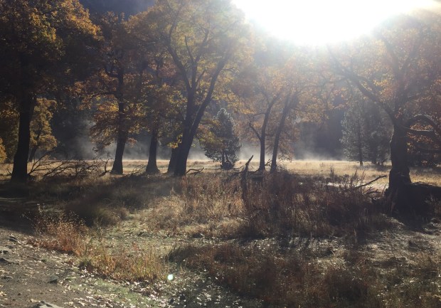 We followed the meandering river into the valley through the golden meadows and the frost was evaporating under the strong morning sun, creating a magical mist! So beautiful.