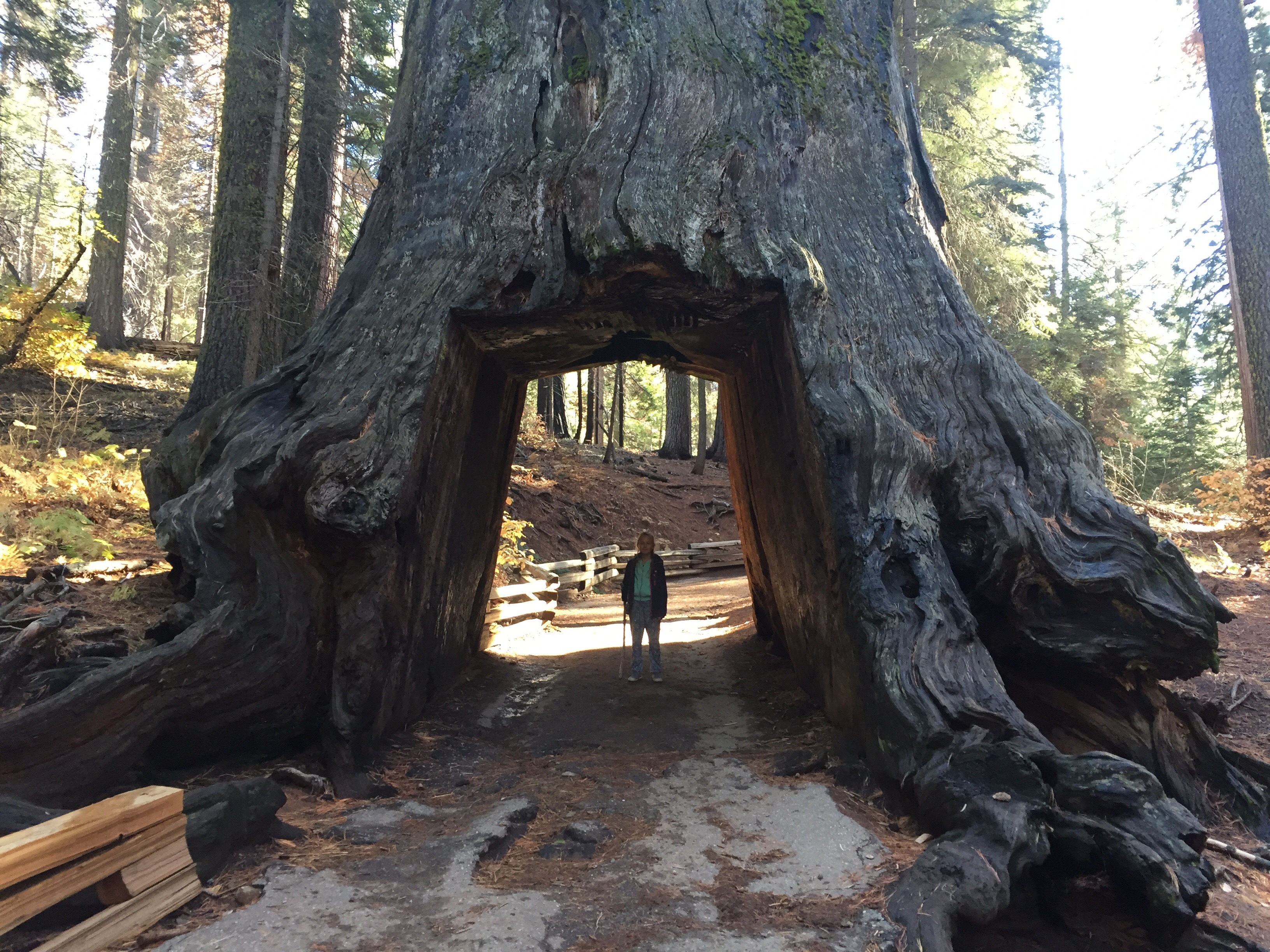 We finished the day with a drive up to the sequoia grove and boy those trees are big! We found the ancient tree stump with the huge carved hole at the base, so big you can drive a car through! The tree is so old even the etched graffiti had 1905 dates on it!