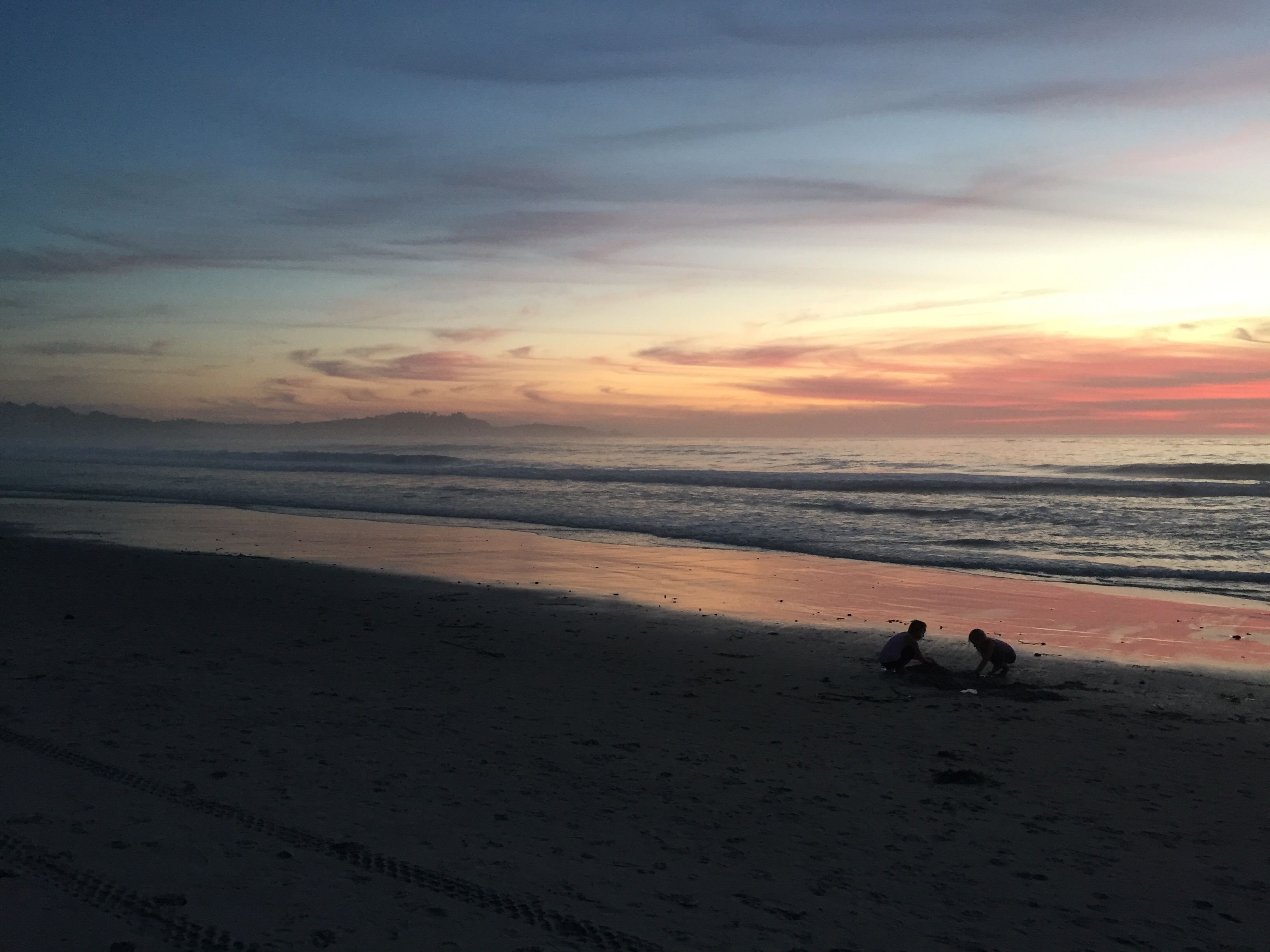 After a full day at the aquarium we checked into our little motel room! Very small, very basic so decided to head straight out to carmel sunset beach to catch the sun going down. The girls loved the soft sandy beach so much and happily played well into the evening and all the surfers were heading home! Absolute bliss!