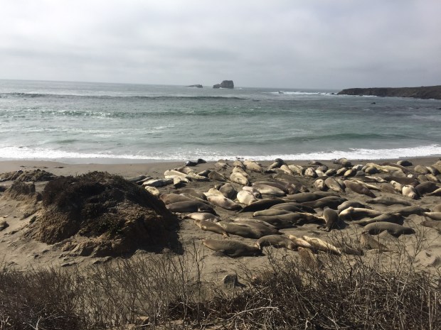 Along the way we spotted a sign for elephant seal viewing so we pulled in and parked up. A welcome leg stretching moment! We walked over to the fenced viewing area and on the beach were hundreads of young male elephant seals. A park ranger gave us a leaflet and explained how these were the juvenile males and they would be here for about 30 days working out their hierarchy! And how all the females were further north with the larger alpha males, getting ready to have their pups in the spring.