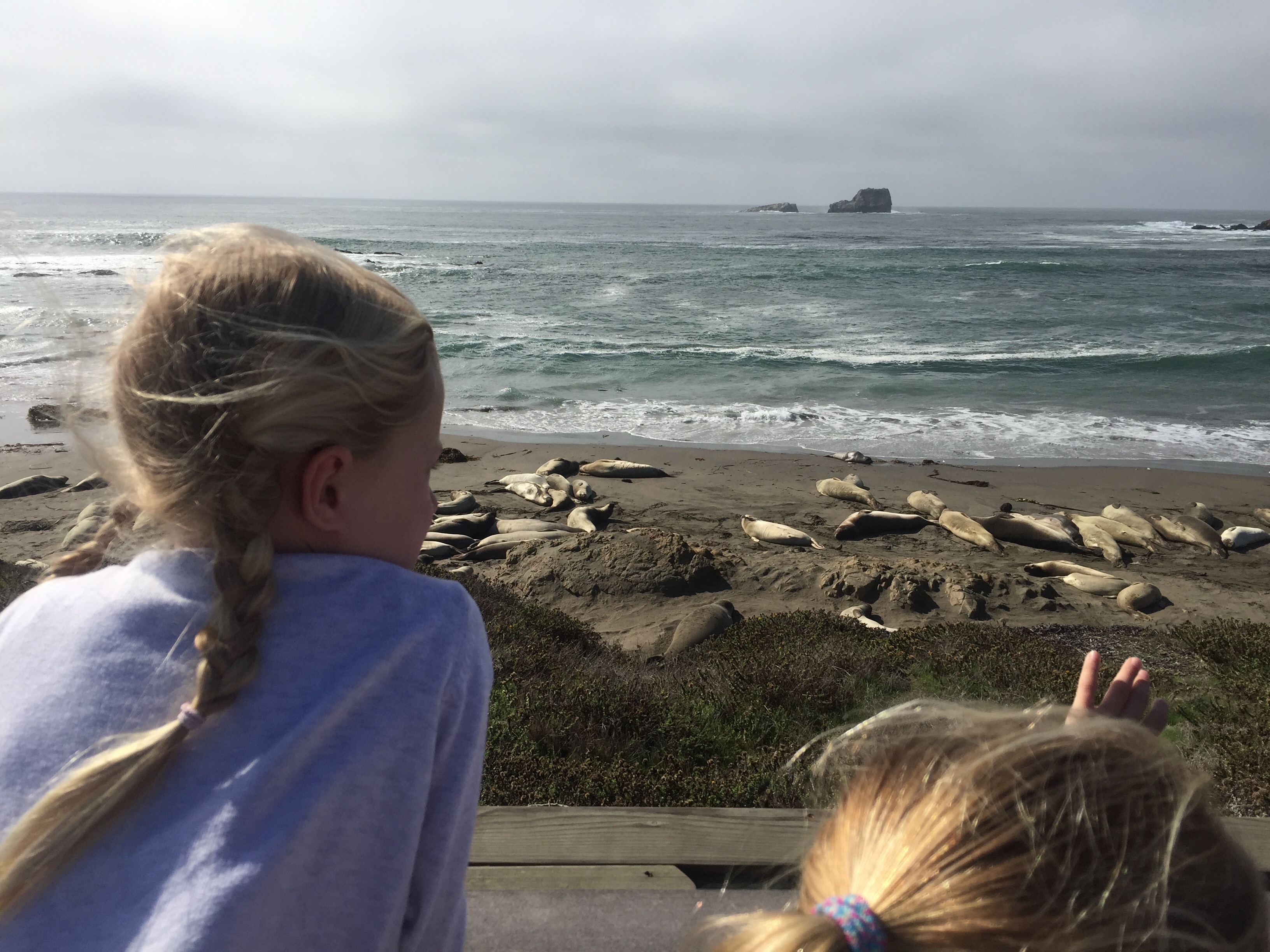 Along the way we spotted a sign for elephant seal viewing so we pulled in and parked up. A welcome leg stretching moment! We walked over to the fenced viewing area and on the beach were hundreads of young male elephant seals. A park ranger gave us a leaflet and explained how these were the juvenile males and they would be here for about 30 days working out their hierarchy! And how all the females were further north with the larger alpha males, getting ready to have their pups in the spring.