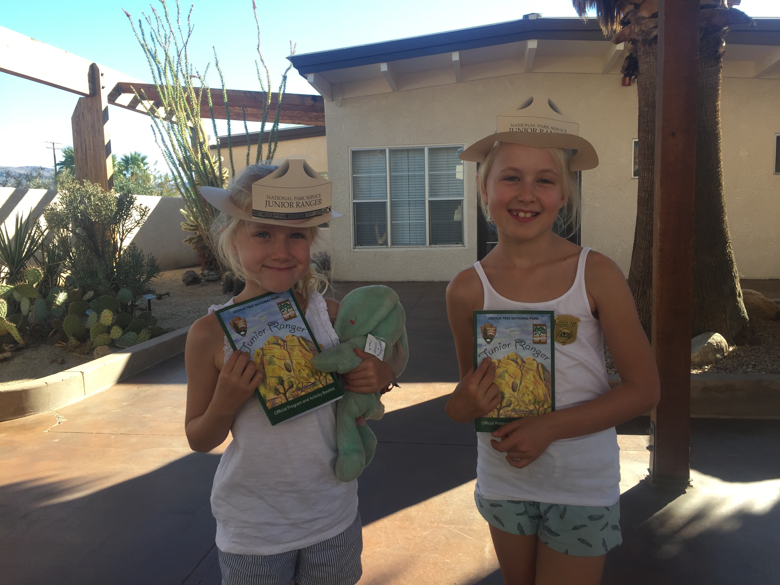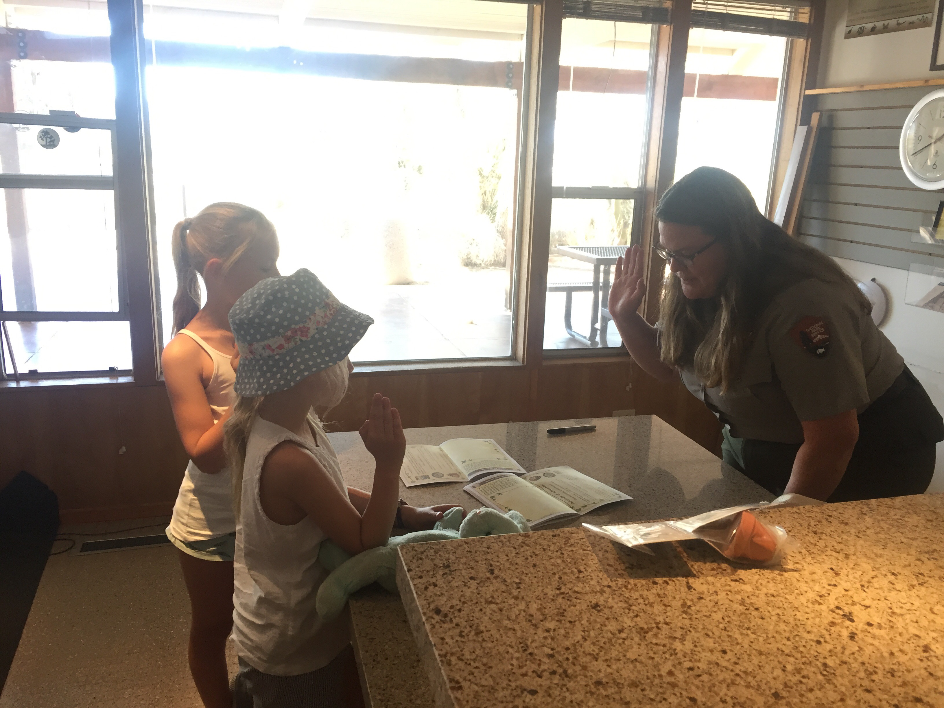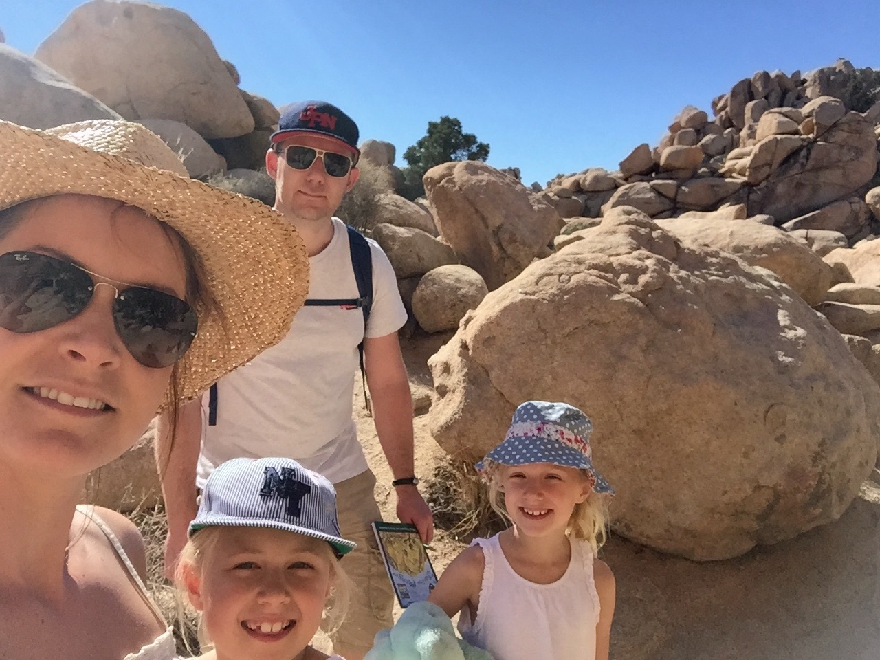 So today we awoke very refreshed and ready to face the Joshua national park desert. The appartment is about 30 mins drive from the entrance and on the way in we stopped at the visitors centre to pick up suggestions from the ranger, warnings on tarantulas 😳 and pick up some great rangers packs for the girls! We also double checked water supplies before entering!