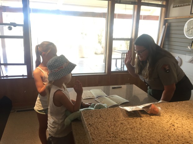 On the way out from the park we stopped at the visitors centre again to hand in the girls activity packs and they were quite surprised to be given their junior ranger badges after chatting to the head ranger and making their pledge to do their bit to keep the parks safe! They even got a signed book, hat and round of applause from everyone in there! Two happy girls!