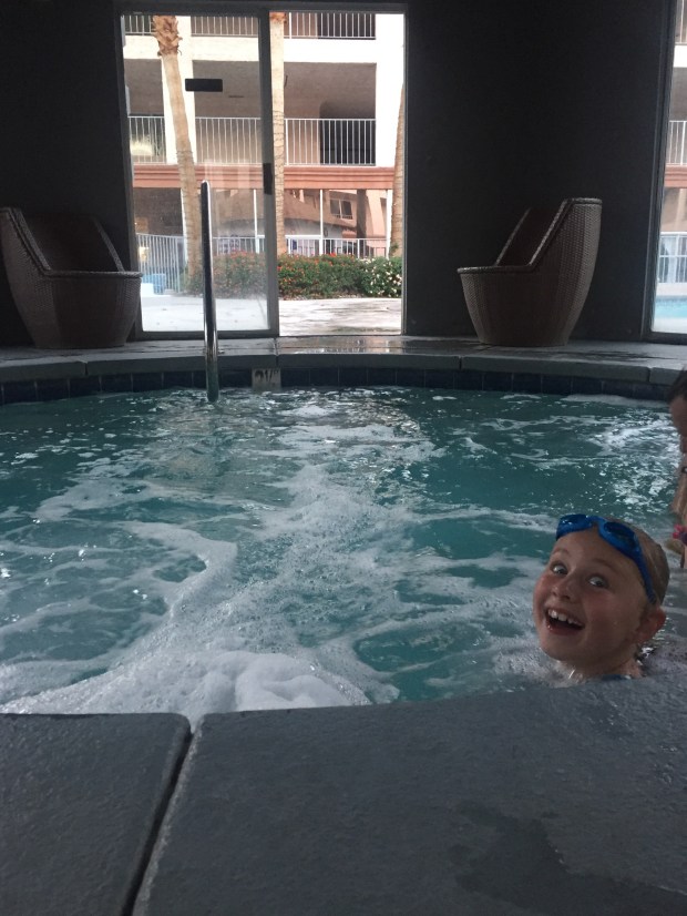 So we dropped bags grabbed swimming costumes and drove back to the hotel for a very relaxing afternoon in the pool and mineral spa hot tubs. We spent the afternoon swimming, hot tubing, generally chilling, and reading by the pool! Just what we needed after all our time in the car recently.