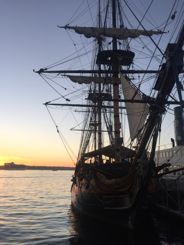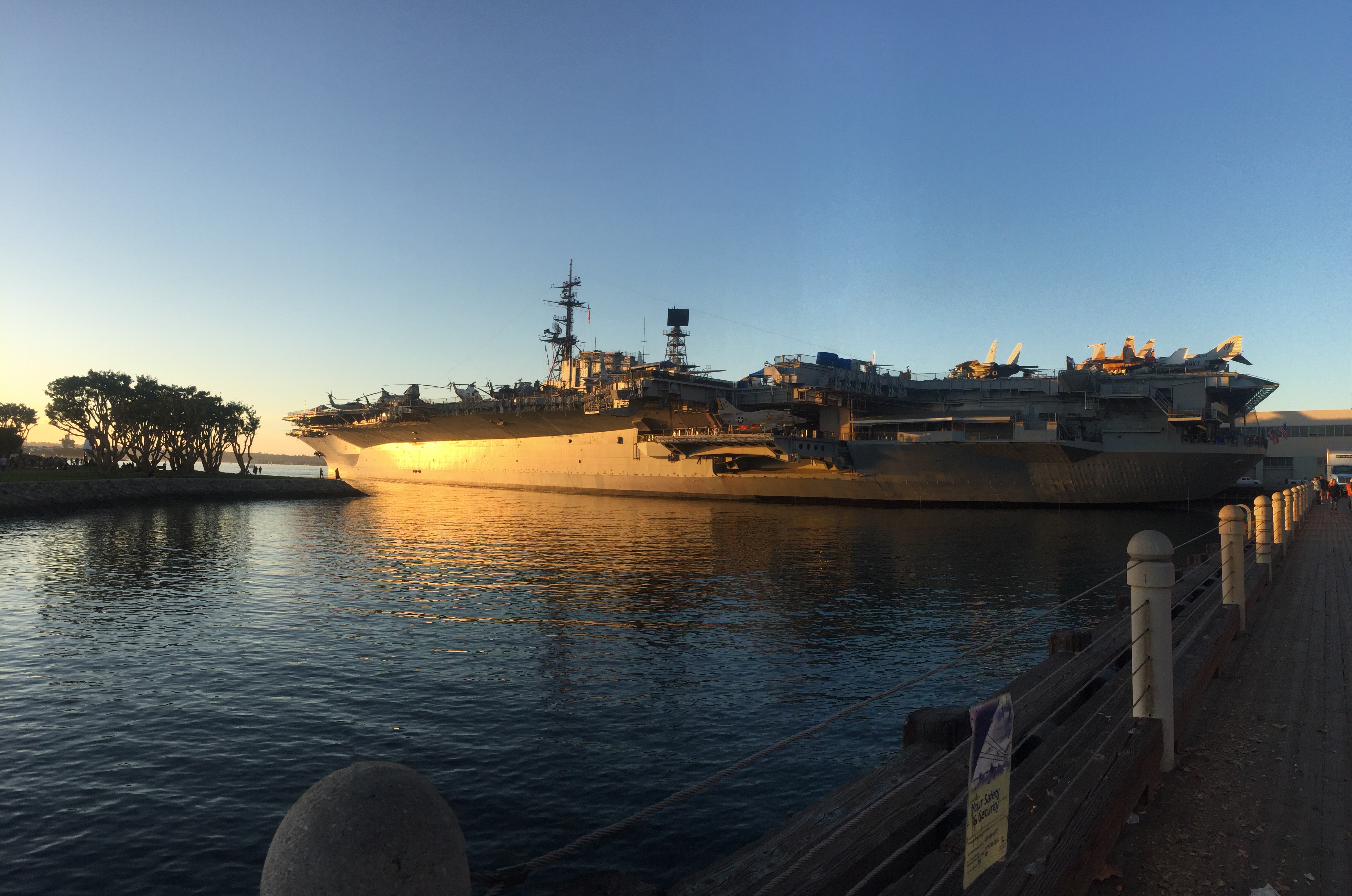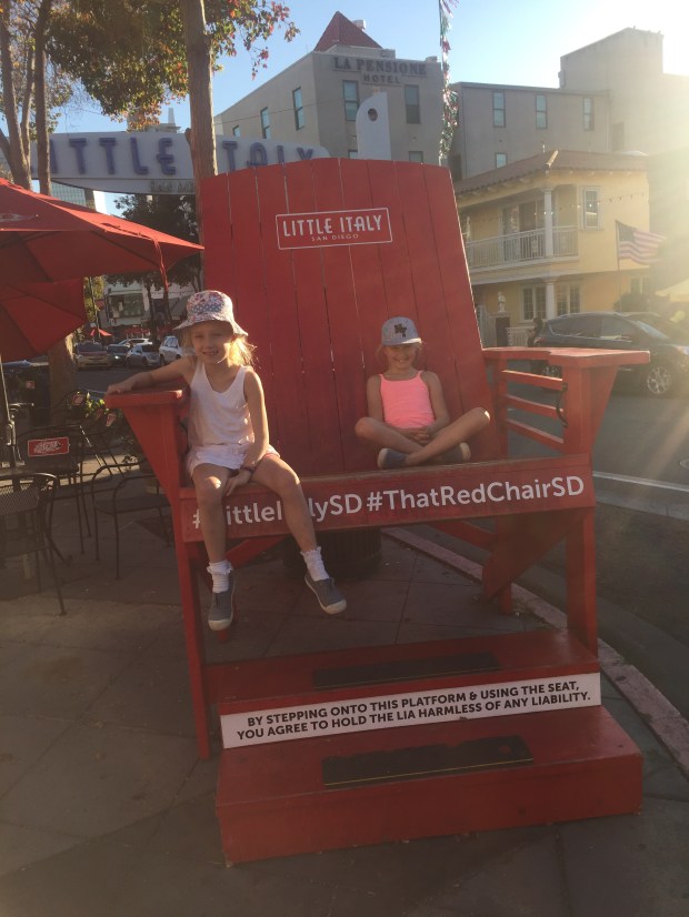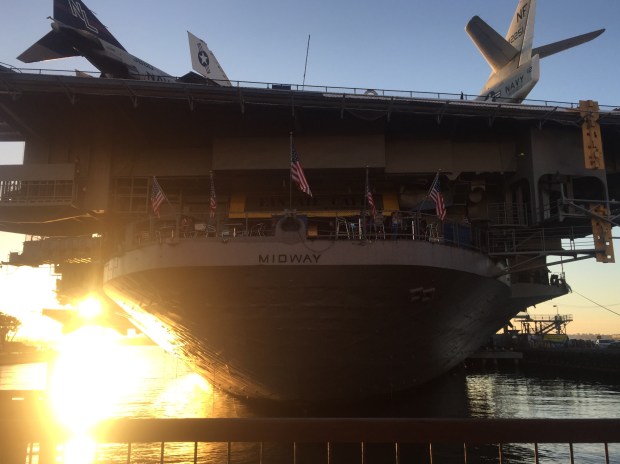 Yesterday we spent the afternoon after arriving walking down to the harbour through very cool little Italy. We stopped for a yummy pizza for a late lunch/early dinner and got to the harbour before sunset. We got a sunset view of USS midway the aircraft carrier stationed here and the girls enjoyed playing in a cool play park nearby before heading home.