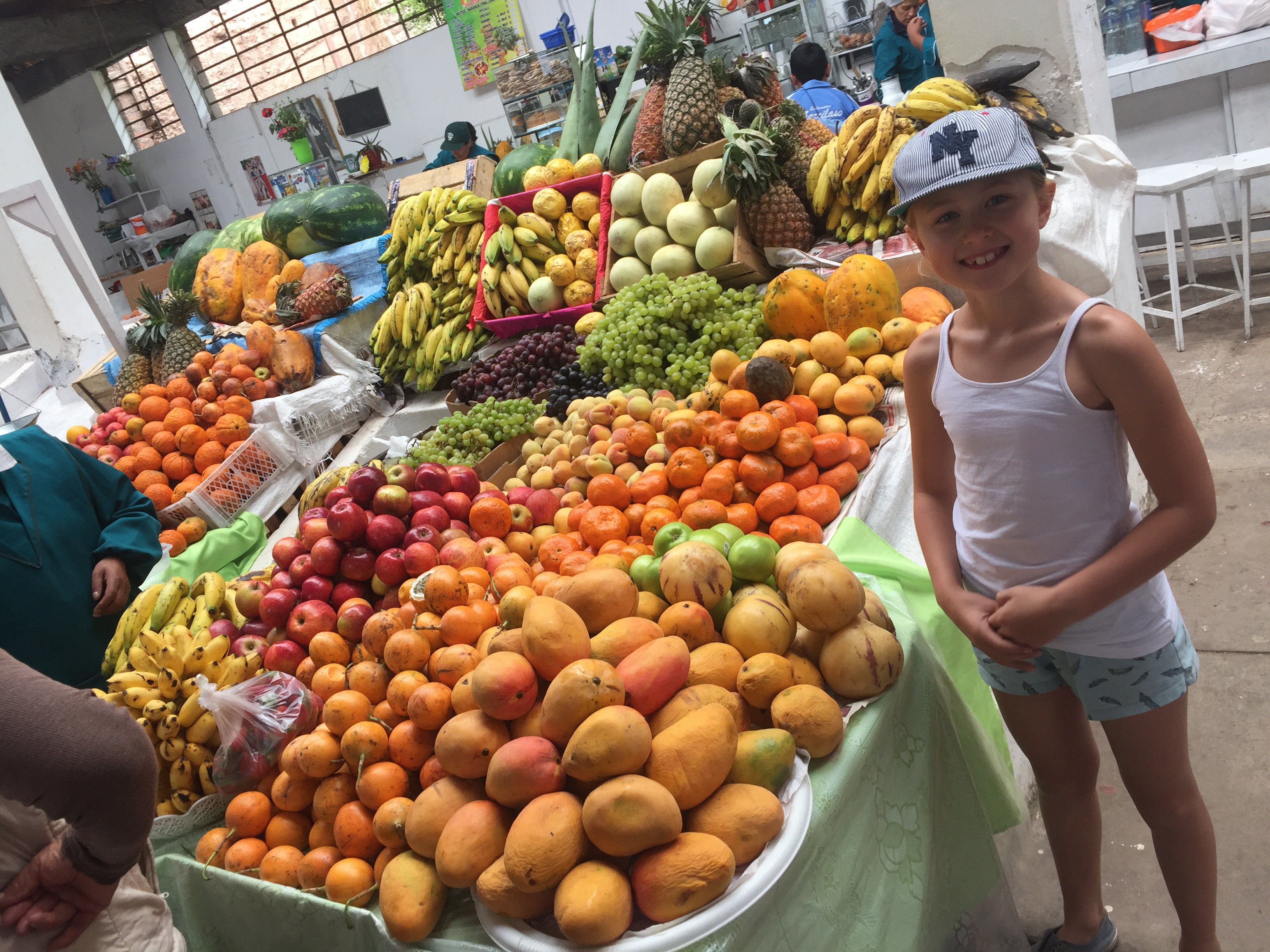 We then took a trip to the local farmers supermarket….ha ha ha….well it’s not quite what we were use too! An open air market style with lots of little stalls selling their goods, the girls faces as they saw the chickens being chopped up on the wooden counter was a picture! We practiced our Spanish and came home with quite a haul of yummy bits!