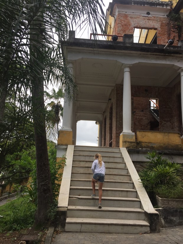 After taking many, many photos and trying our best to take it all in, we made our way back down (picking up some more stickers for the girls books on the way) to our guides car and sped off to the neighbourhood of Santa Teresa, an area known for its bohemian narrow and winding cobbled streets, colonial Portuguese style houses with wooden shutters and artistic street art. The Brazilian Montmartre! We first stoped at parque das ruinas, an old mansion left to ruins, that has recently been contemporaryly (is that a word!) adapted into a venue for musicians and artists and offers a wonderful panoramic view of the city.