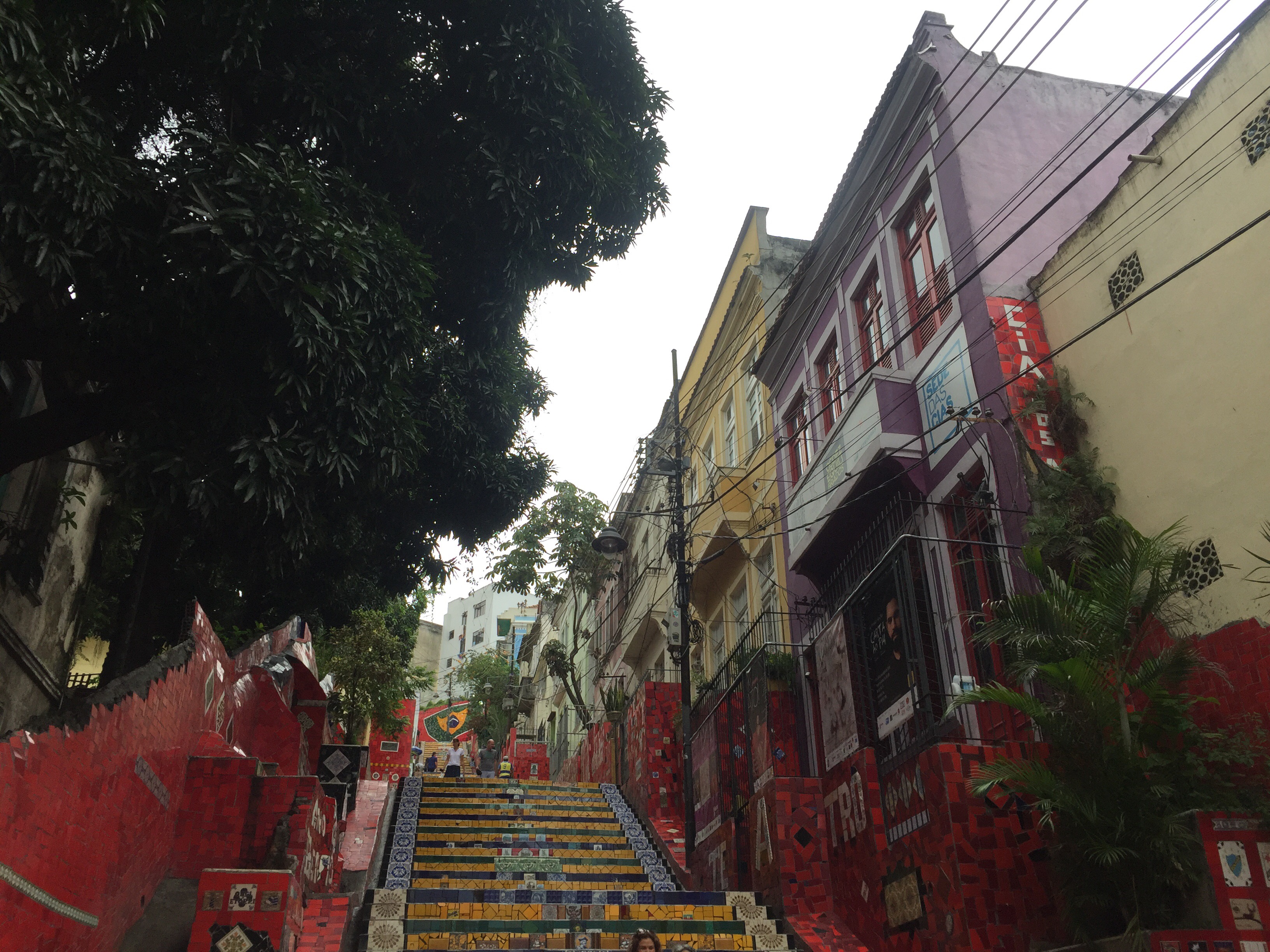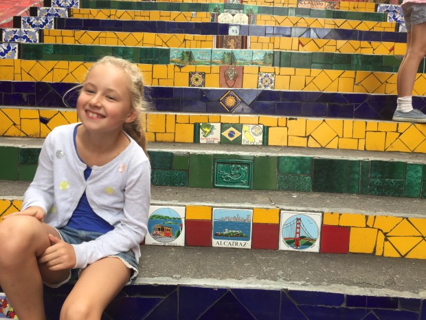 We then stopped at my favourite the colourful Escadaria Selaron steps. Our guide told us the fascinating story of the Chilean artist Jorge Selaron (who he had met many times) How he came to live here after falling in love with a local lady and decorated the stairs with tiles from near and far! Tragically he died or as our guide thought was perhaps killed on the very steps he had created! Fascinating stuff! The girls enjoyed climbing the many different levels and searching for tiles from places we’d visited.