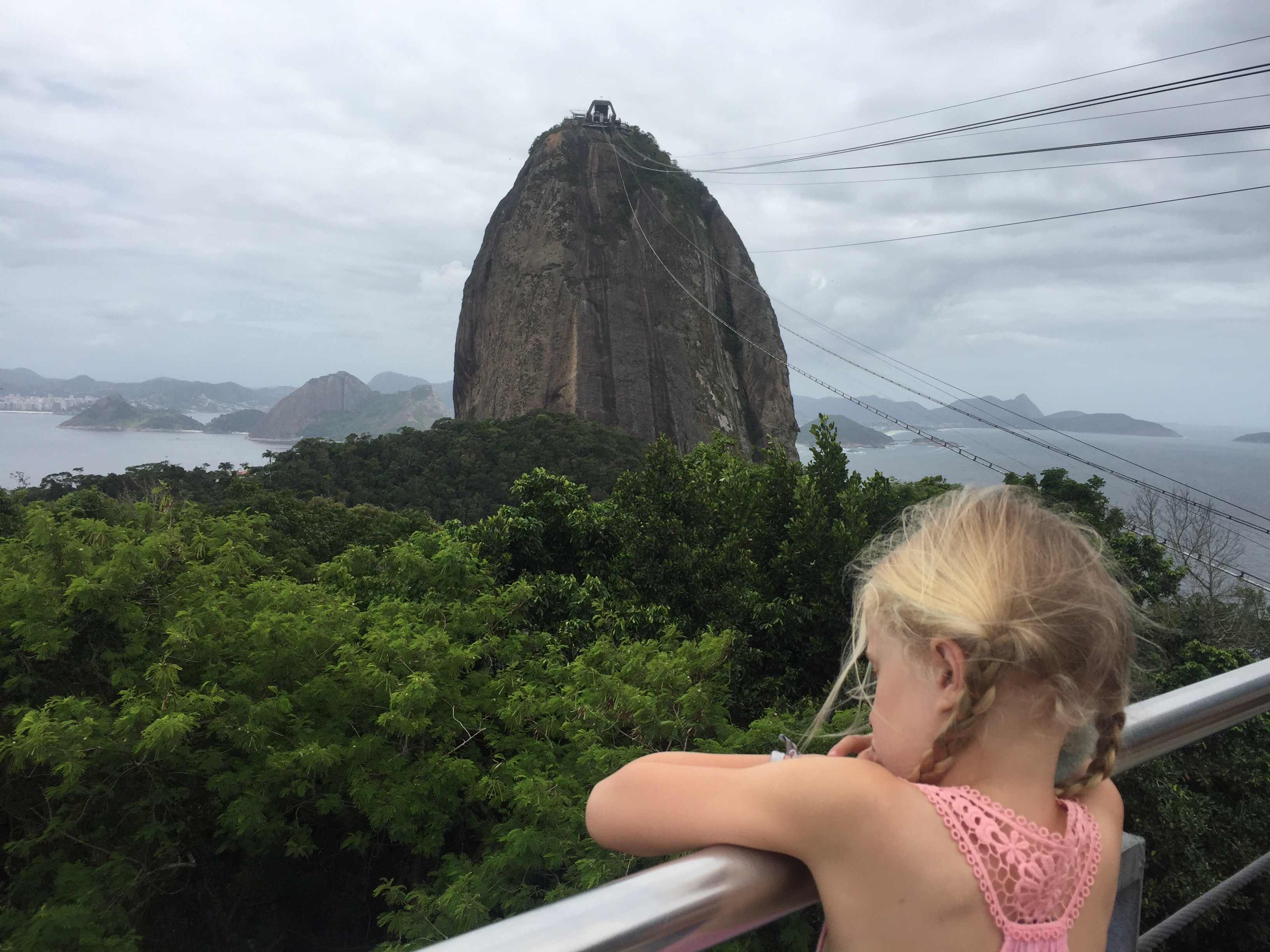 Afterwards we drove on to the famous Sugar Loaf mountain and took the cable car up the granite rock to see a completely different view of the city, mountains and forests. The famous copacabana beach stretched out below, along with all the lagoons and bays just gorgeous! Whilst we were up there we caught sight of some of the small marmoset monkeys, much to the girls pleasure! And it was funny to watch the vultures flying below us, gliding along in the breeze!