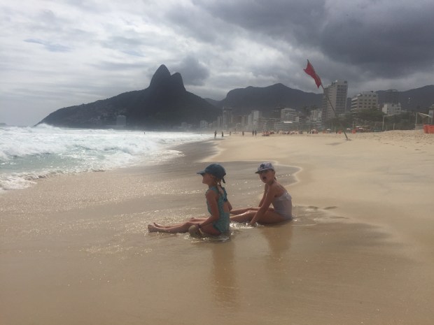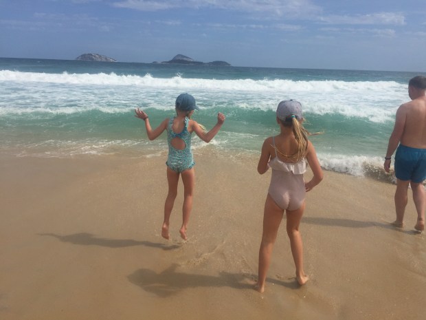 After this we said good bye to our lovely guide Alan who dropped us back at our apartment. Feeling a little tired we had a quick siesta before heading back out to the ipanema beach, just a short walk away. We spent the late afternoon relaxing in the sun, drinking fresh coconut water from the beach seller, and the girls and Den had a great time splashing and swimming in the crazy waves followed by lots of beach snuggles!