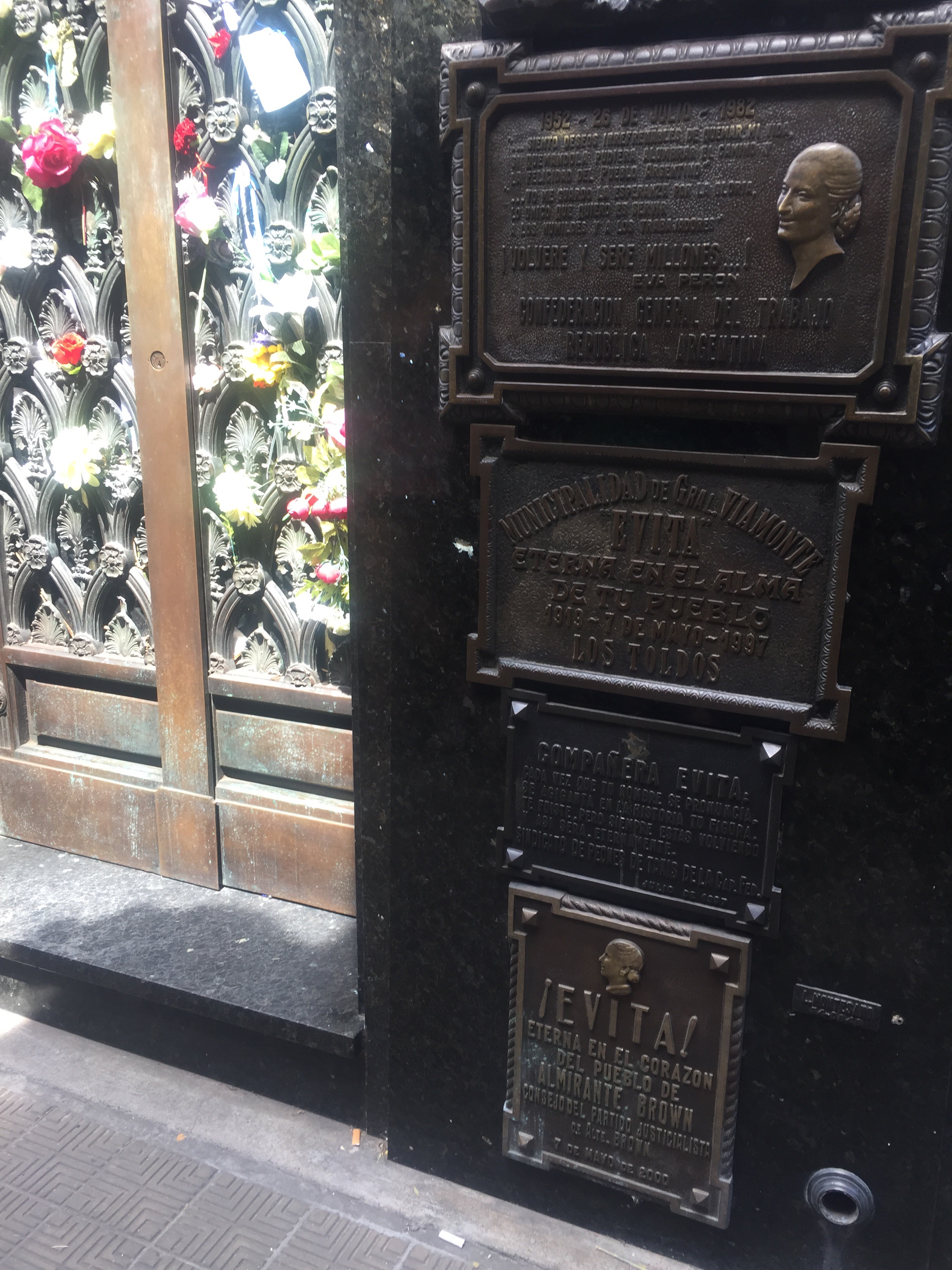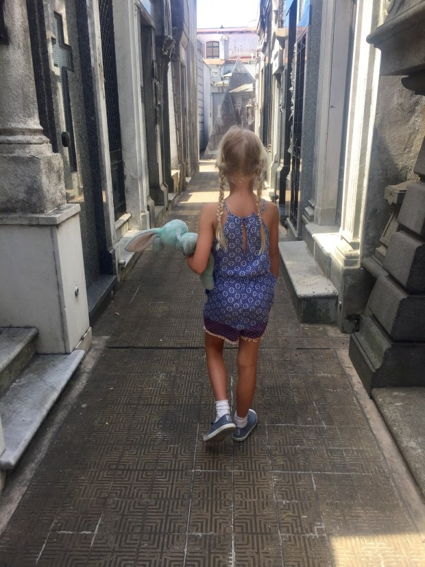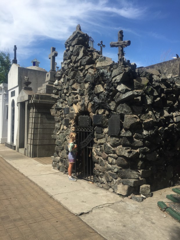 We also decided to brave it with Daisy and head to the cementerio de la Recoleta (She’s not a fan of these things!) A labyrinth of paths fill this famous cemetery, and it’s the final resting place for many of Argentinas greats, including Eva Peron “Evita”. We managed to find it among the thousands of elaborate vaulted tombs, all of which resemble mini chapels some with beautiful stained glass windows. It felt weirdly okay to be pearing in through all the doors and windows and girls found it fascinating, not at all scary, the whole place felt very calm and peaceful.