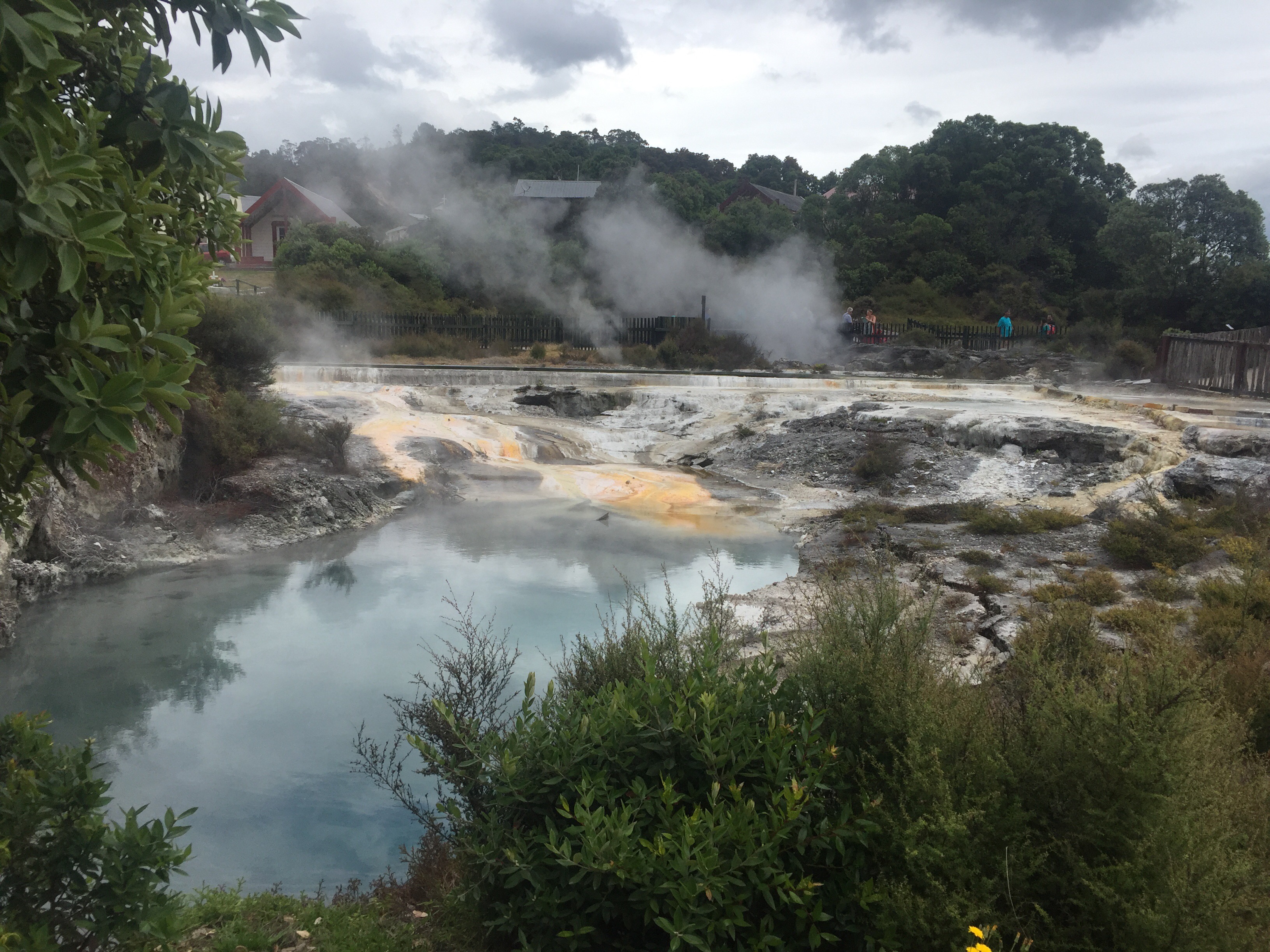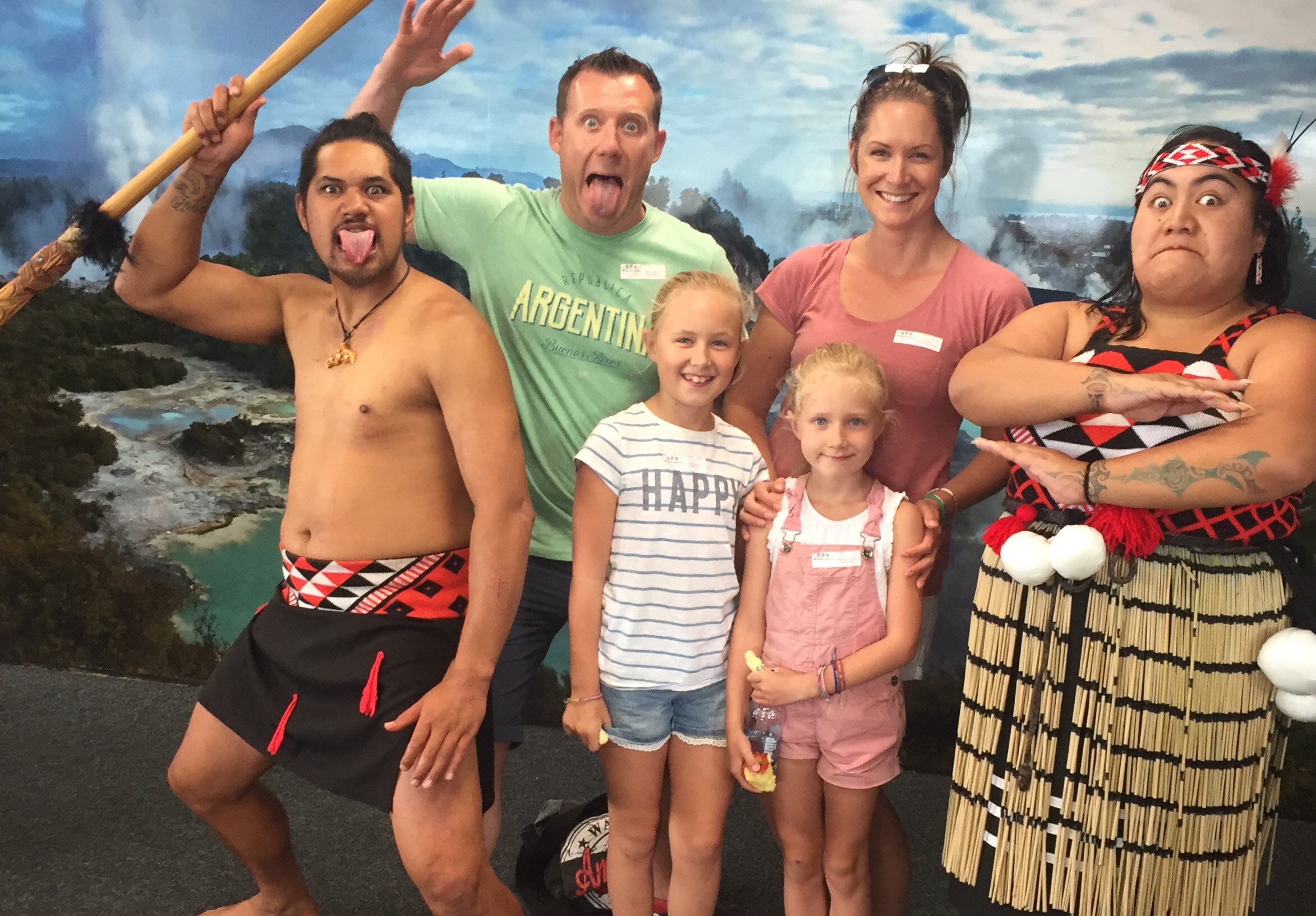 We also couldn’t come to Rotorua and not see some of the Maori culture which the town is well known for. So we took a trip to the living Maori village of Whakarewarewa, not far from where we were staying. The families that still live in the village are descendants of the first tribe to set up in Rotorua and still bathe and cook in the many hot pools that the village sits on! It was fascinating and we enjoyed a tour around the village, with stories of the village ancestors and on to a wonderful cultural show of Maori dancing, singing and of course the haka! Den even got up on stage to perform, much to the girls delight!