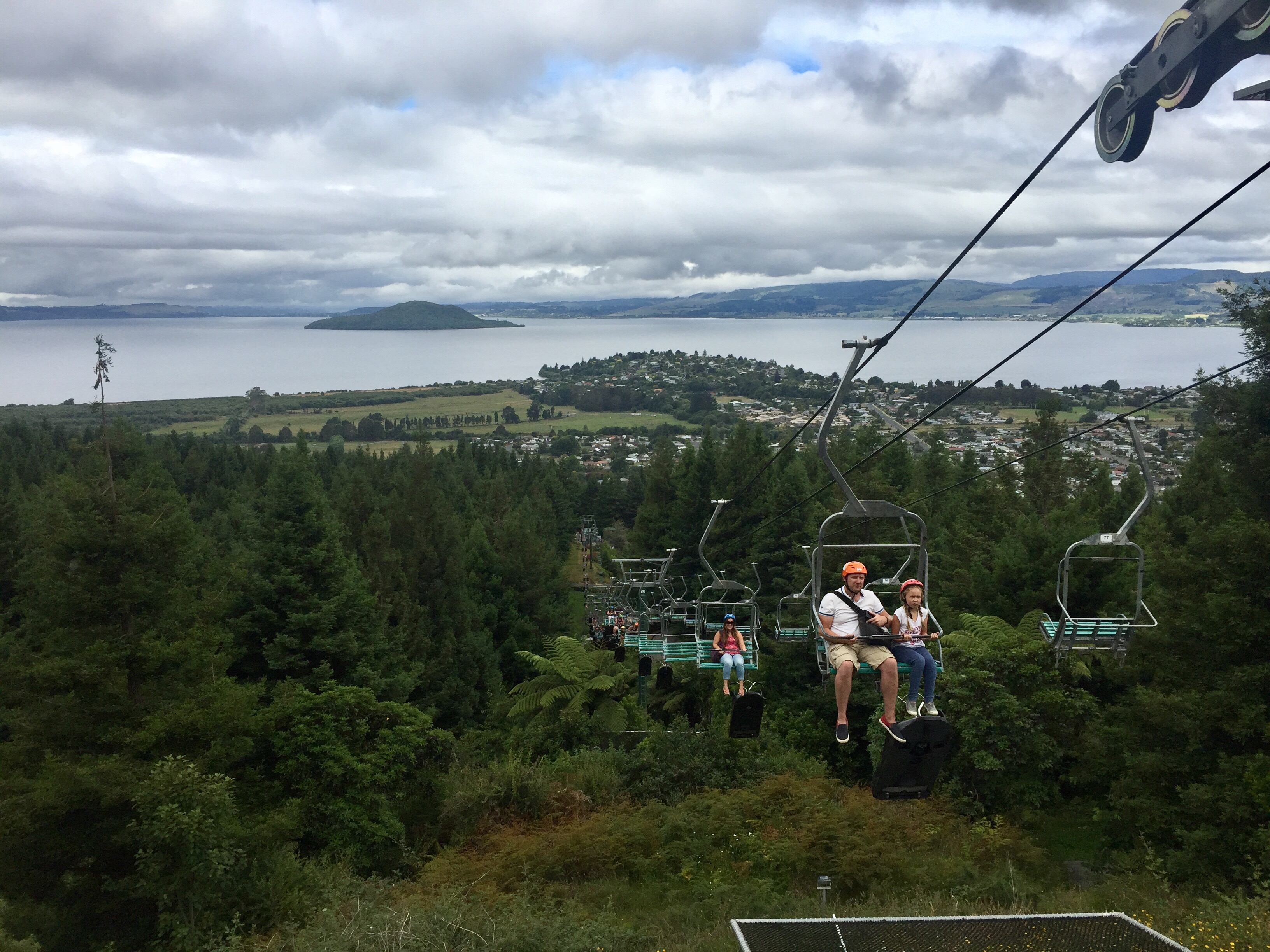 Yesterday we also had a bit of fun at the Rotorua skyline. We took the speedy gondola up the mountain admiring the beautiful views of Lake Rotorua as we went up. At the top we found the start of the luge ride, where (despite Daisys hesitation at first) we sped down the windy paths in little go carts! A lot of fun was had and the girls and Den had many many goes, thankfully there was also a winery and the top, so the ladies did a spot of wine tasting!