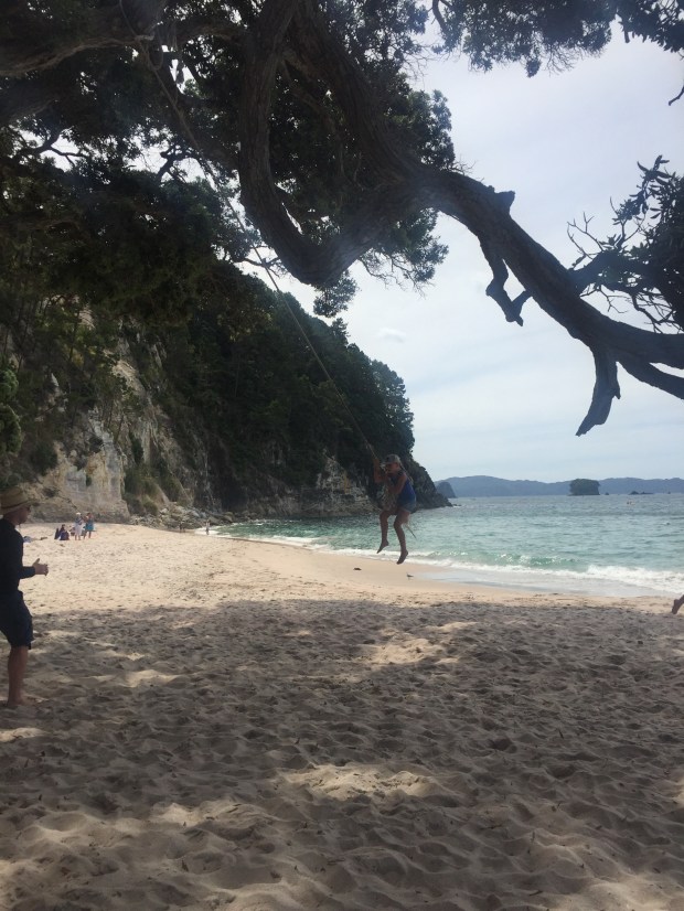 So after a quick picnic in the park afterwards we continued to our new Airbnb stopping at Hahai beach on the way! Another contender for my favourite beach! It’s a popular holiday beach with a very chilled out vibe, we parked up and bought some scrummy ice creams for the walk down to the beach. We didn’t swim here but really enjoyed relaxing in the sun on the warm sand and the girls LOVED the rope swings hanging from the trees that lined the beach! I think we’ll be back to this one this week as we need to check our cathedral cove and hot water beach nearby, another two beaches only reached only at low tide.