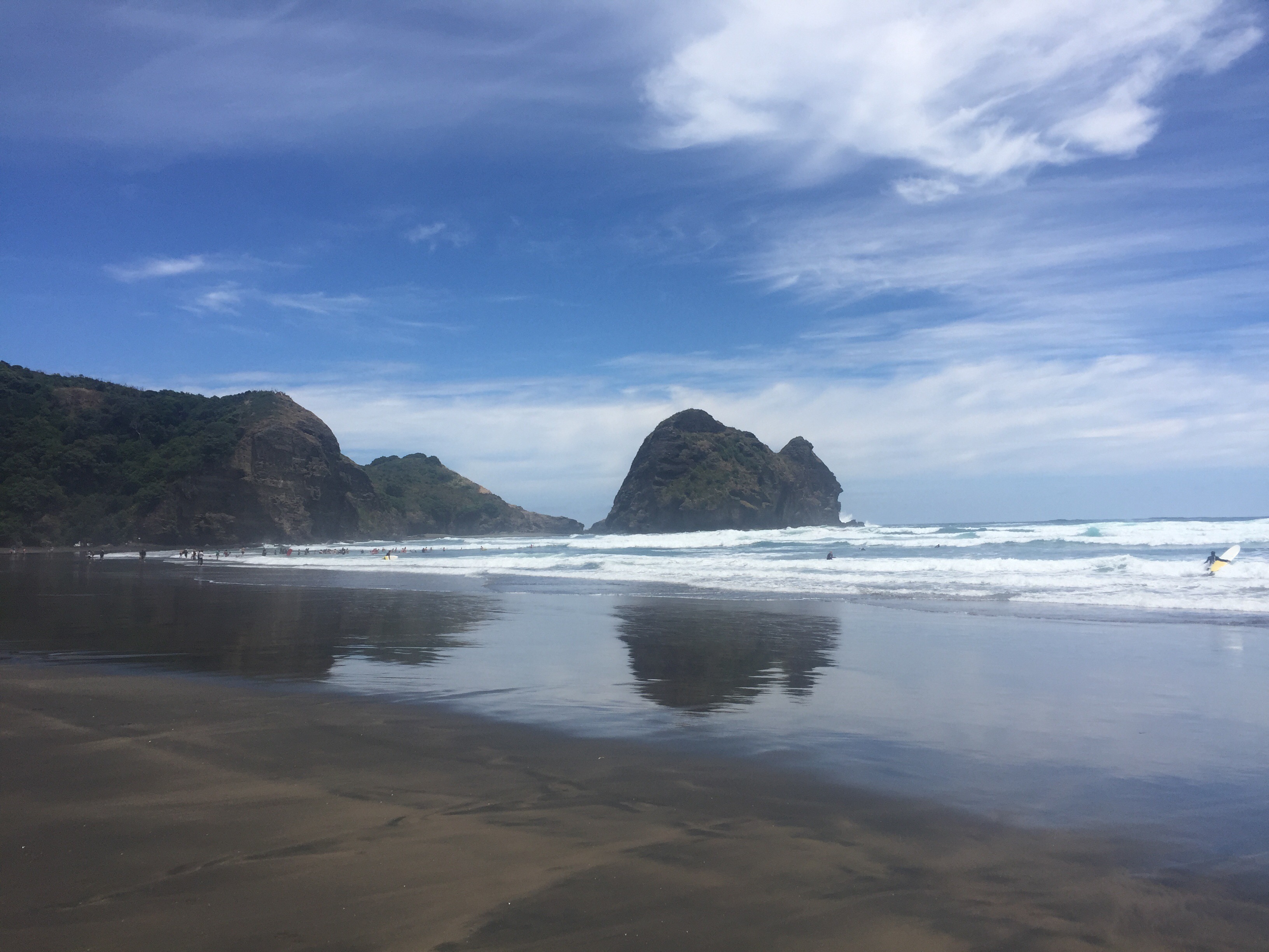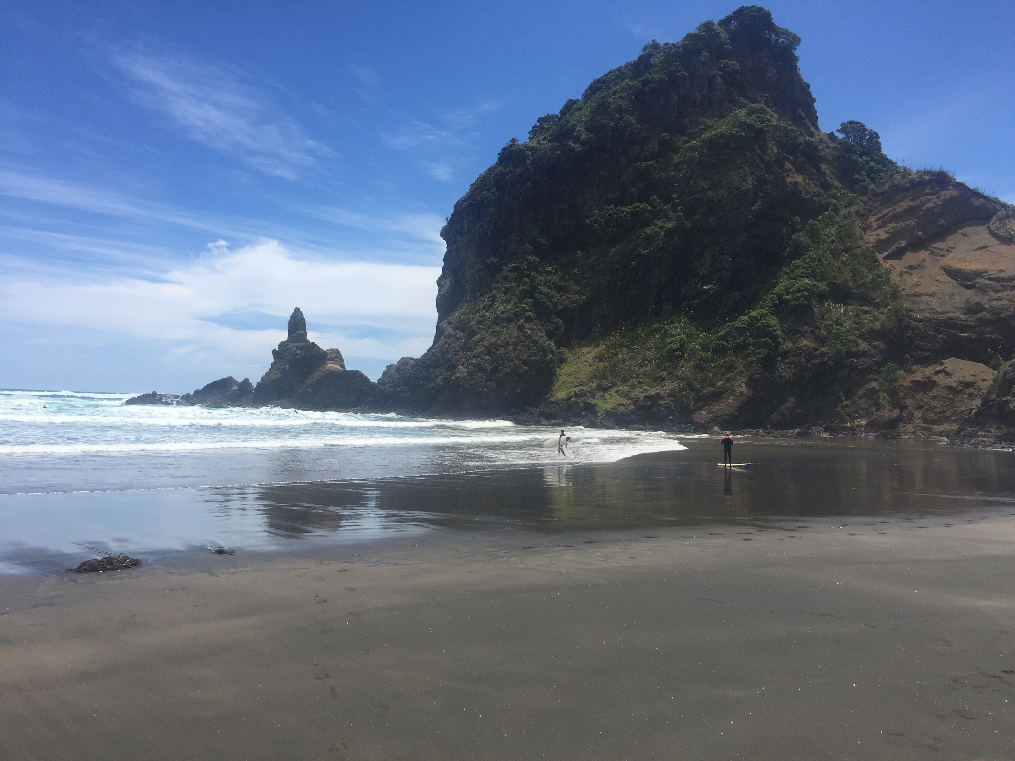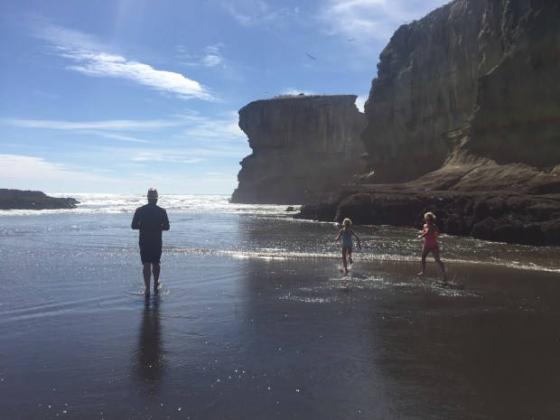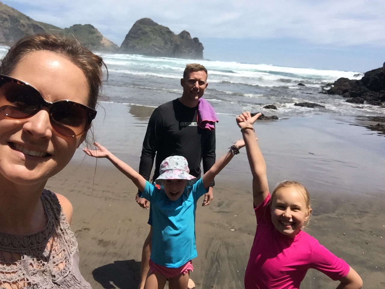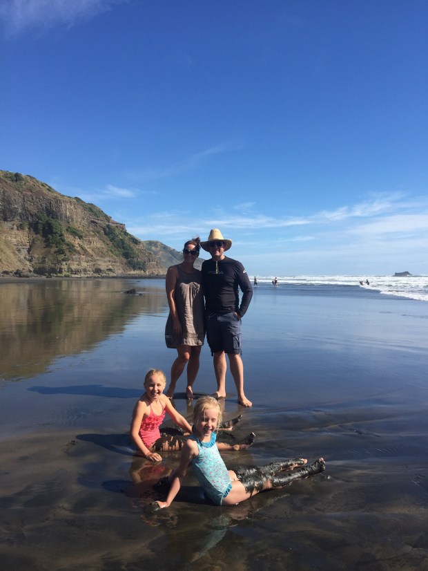 Yesterday after schooling was done we decided to drive out to the beaches on the west coast of Auckland, to see the black sands along the wild coast. Again so different from everywhere else, the soft volcanic sand is dark black, twinkly and feels amazing between your toes!