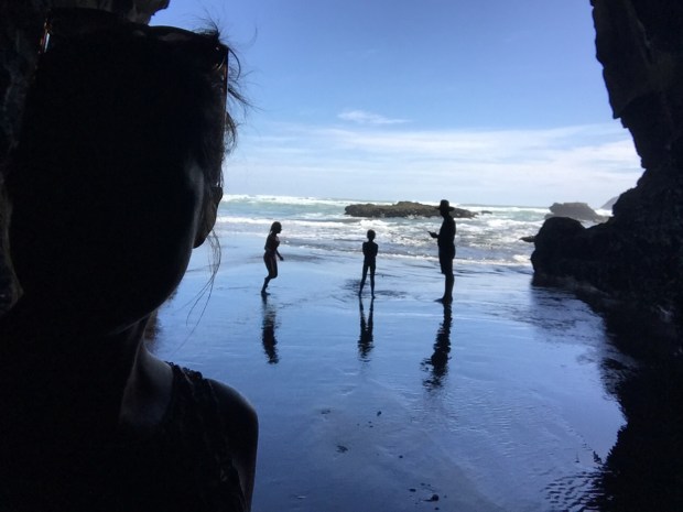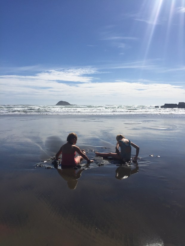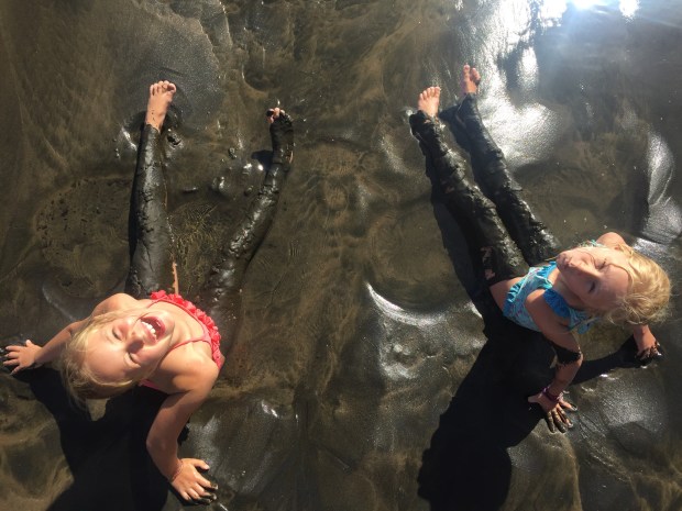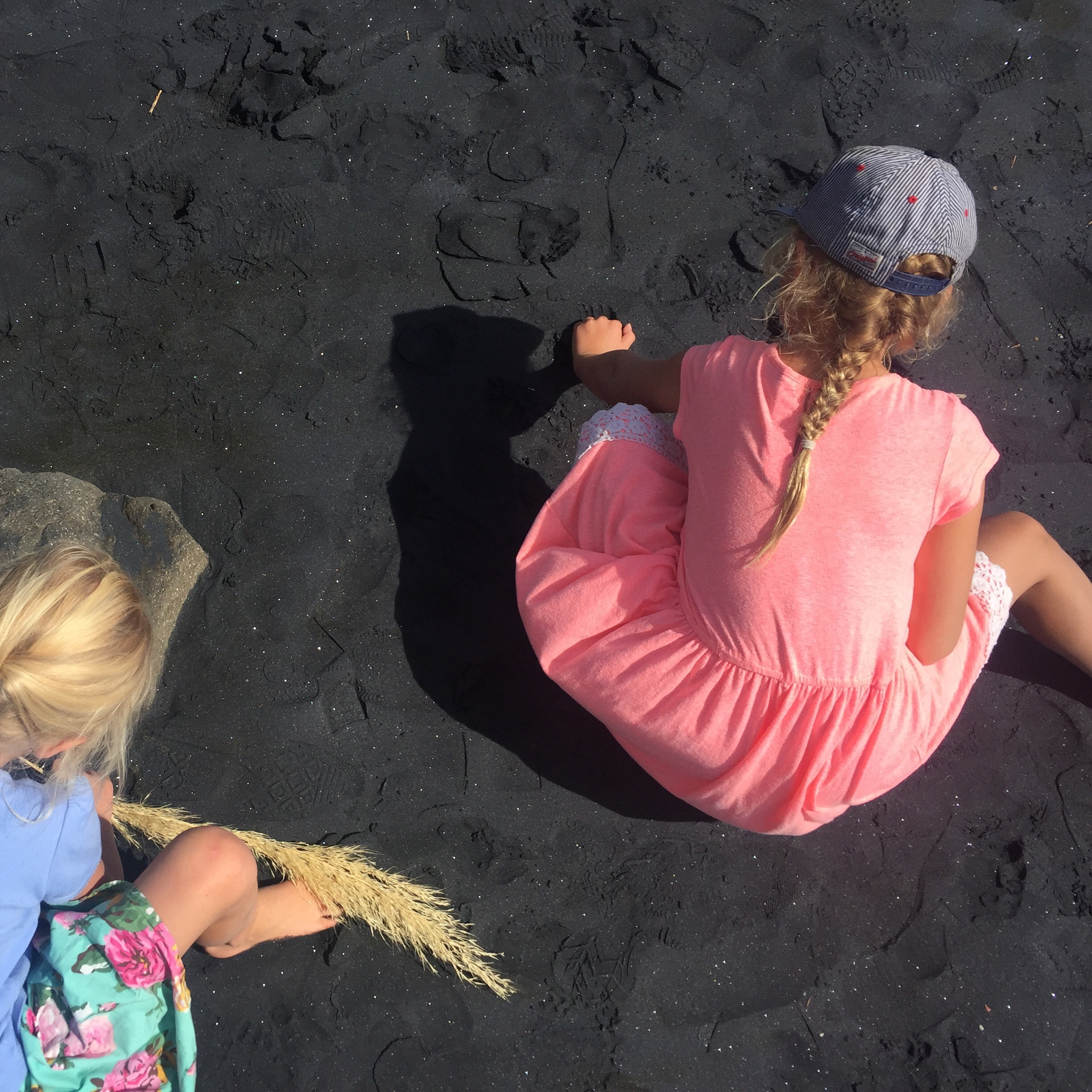 The girls loved playing in the shallow waters and thought it was hilarious covering themselves in the wet black sands! Their poor swimsuits will never be the same again, but hey it was great fun! We even left our mark with our name on the sand!