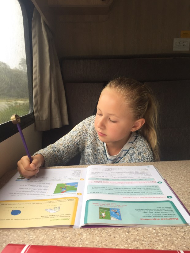 As we knew we would be driving along for quite a while I thought it would be a good time to get some schooling done. So I took it in turns to sit in the back with each of the girls (one on one learning seems to be working best at the moment!) so we did English and then a brief history of Australia, time well spent!