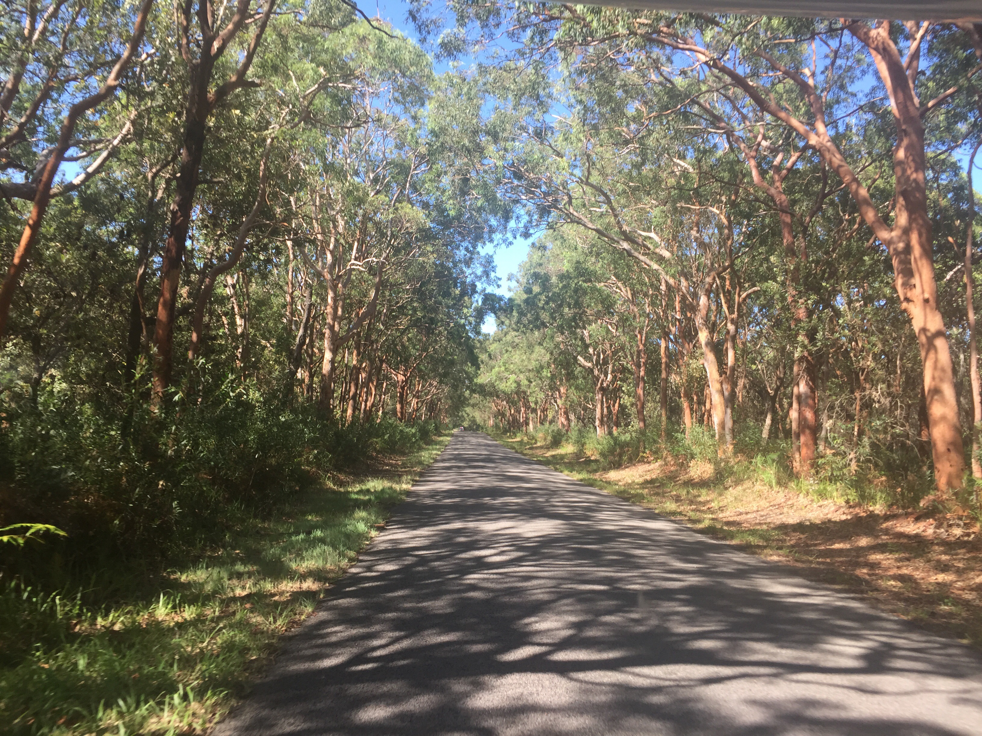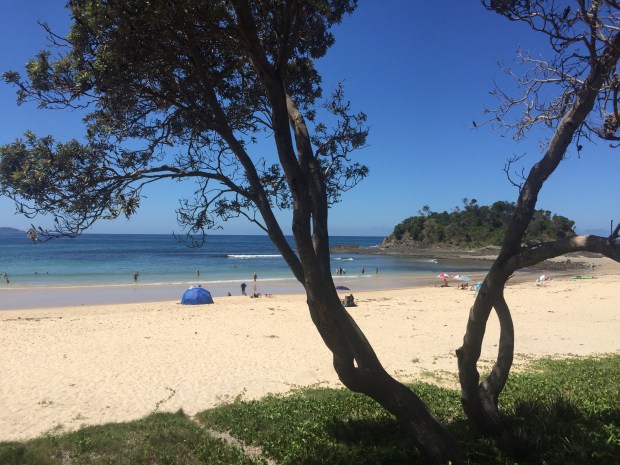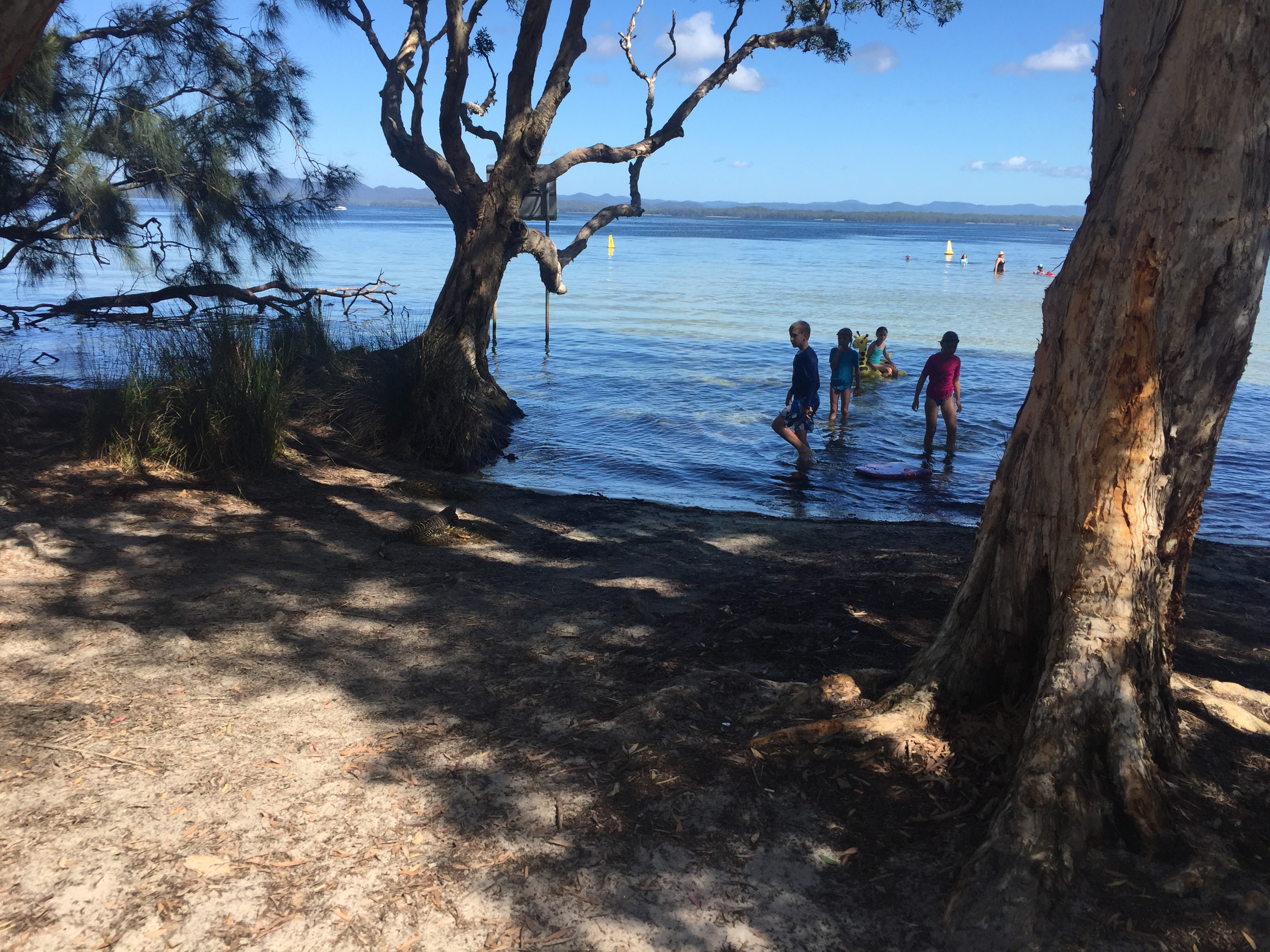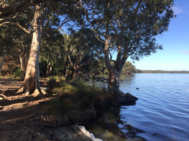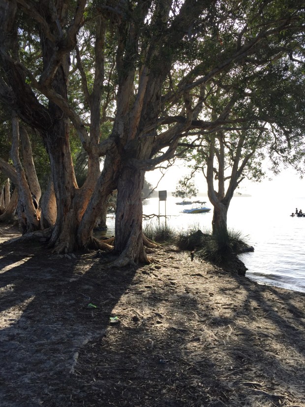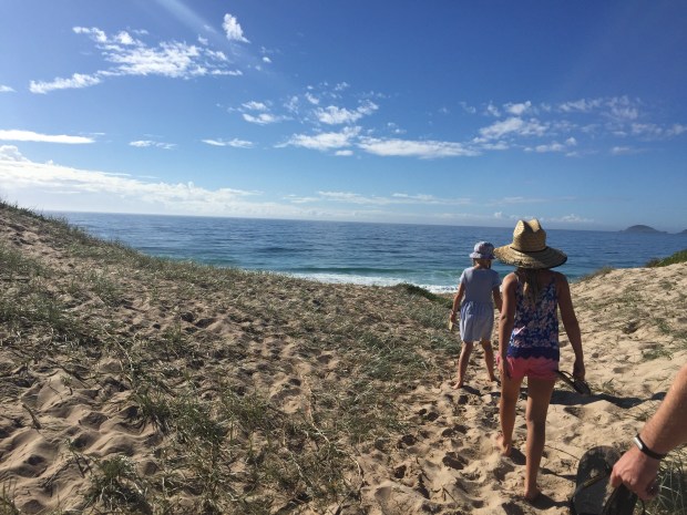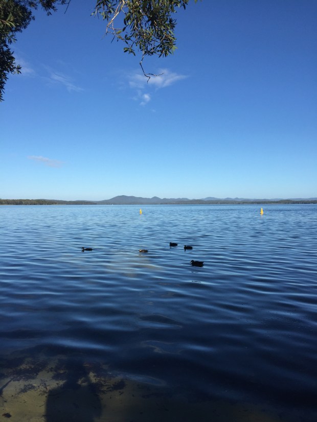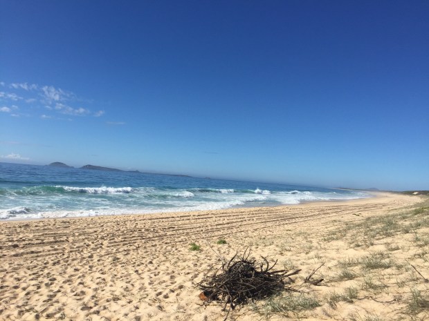 After a couple of hours driving we reached the coast and began heading north. The sun was shinning, we had blue skies and it was getting hotter and hotter! We began driving through the very scenic Myall Lakes National Park, an area with twinklingly clear fresh water lakes surrounded by mangroves, tropical bush and eucalyptus trees. On the other side, soft white sand dunes meeting the crashing turquoise waves of the Pacific Ocean! So much natural beauty in one little area!