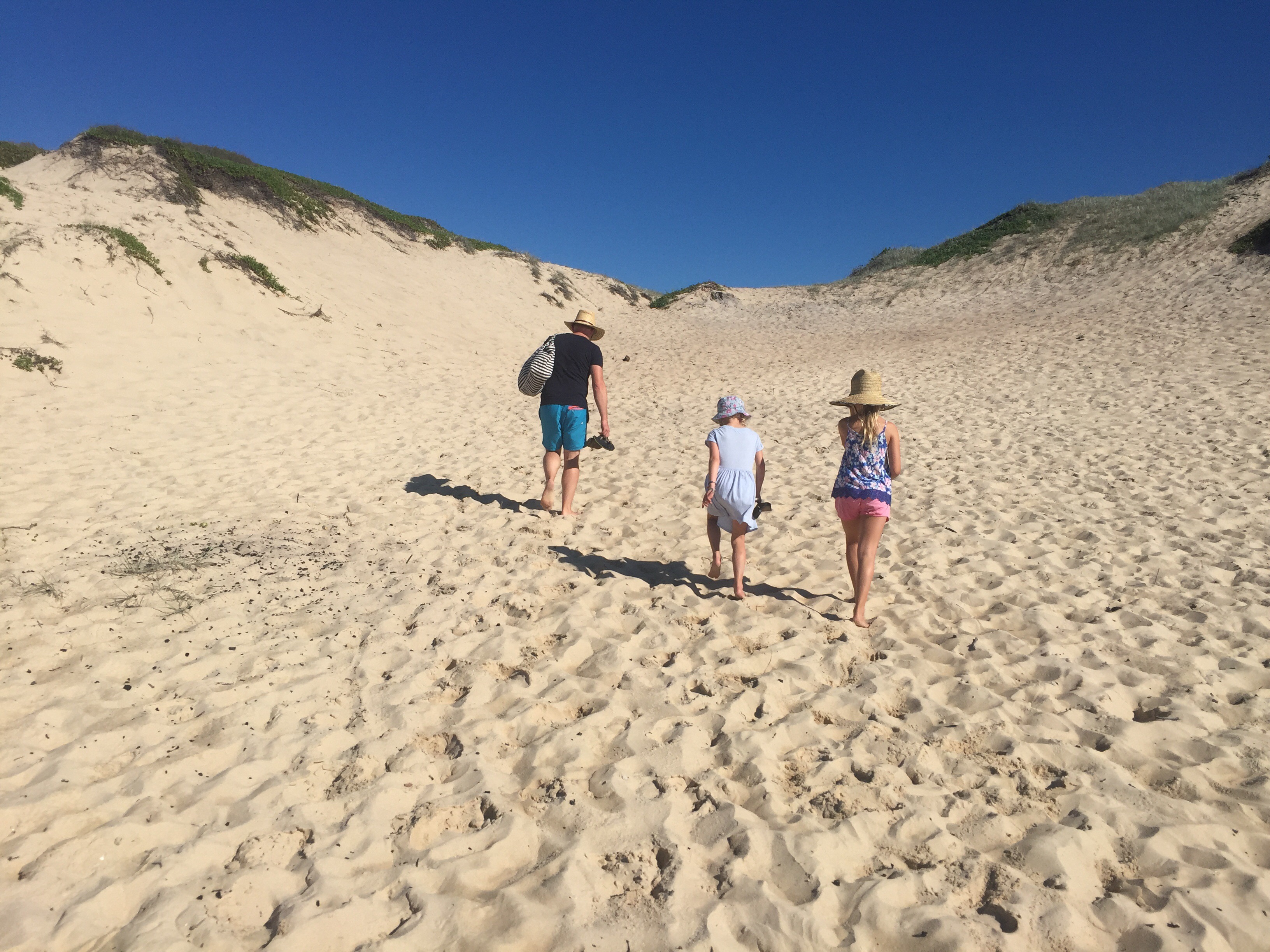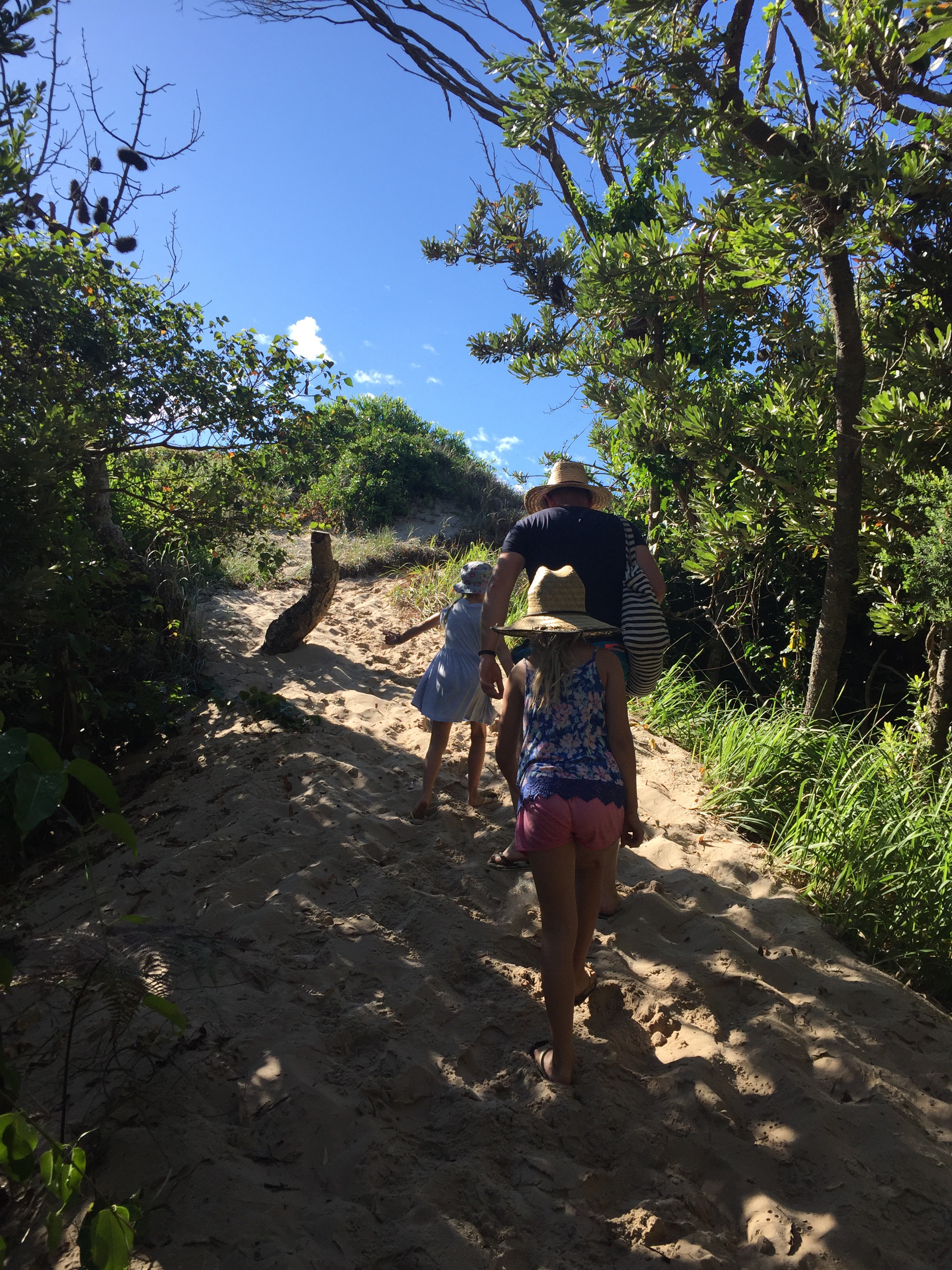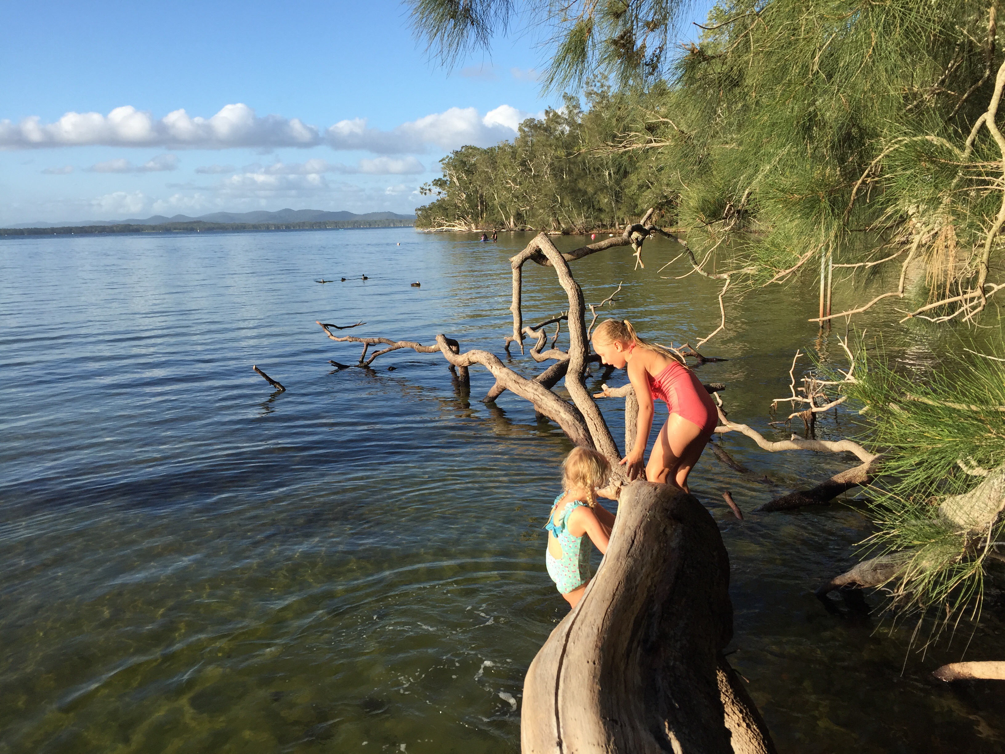 After a couple of hours driving we reached the coast and began heading north. The sun was shinning, we had blue skies and it was getting hotter and hotter! We began driving through the very scenic Myall Lakes National Park, an area with twinklingly clear fresh water lakes surrounded by mangroves, tropical bush and eucalyptus trees. On the other side, soft white sand dunes meeting the crashing turquoise waves of the Pacific Ocean! So much natural beauty in one little area!