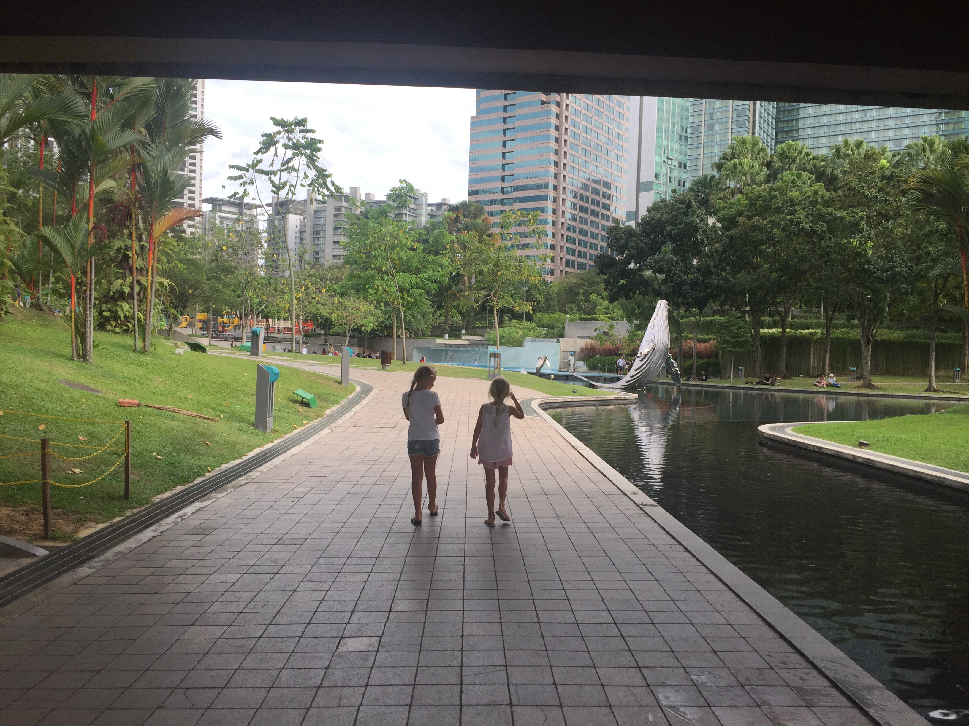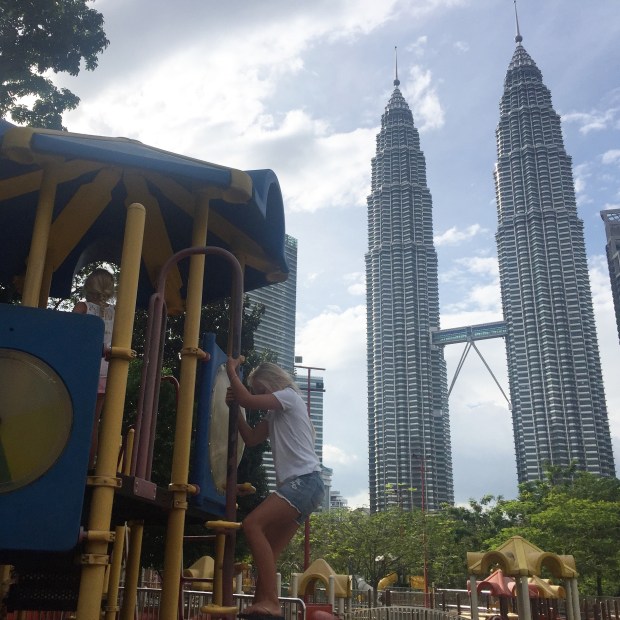 We were all feeling a bit jaded from the travel day so we decided to have a slow walk around the twin towers and it’s surrounding gardens in the afternoon. The girls were so pleased when we found the fantastic play park with almost a city of climbing frames and water play areas among the water falls and lush green gardens! Happy kids = happy parents
