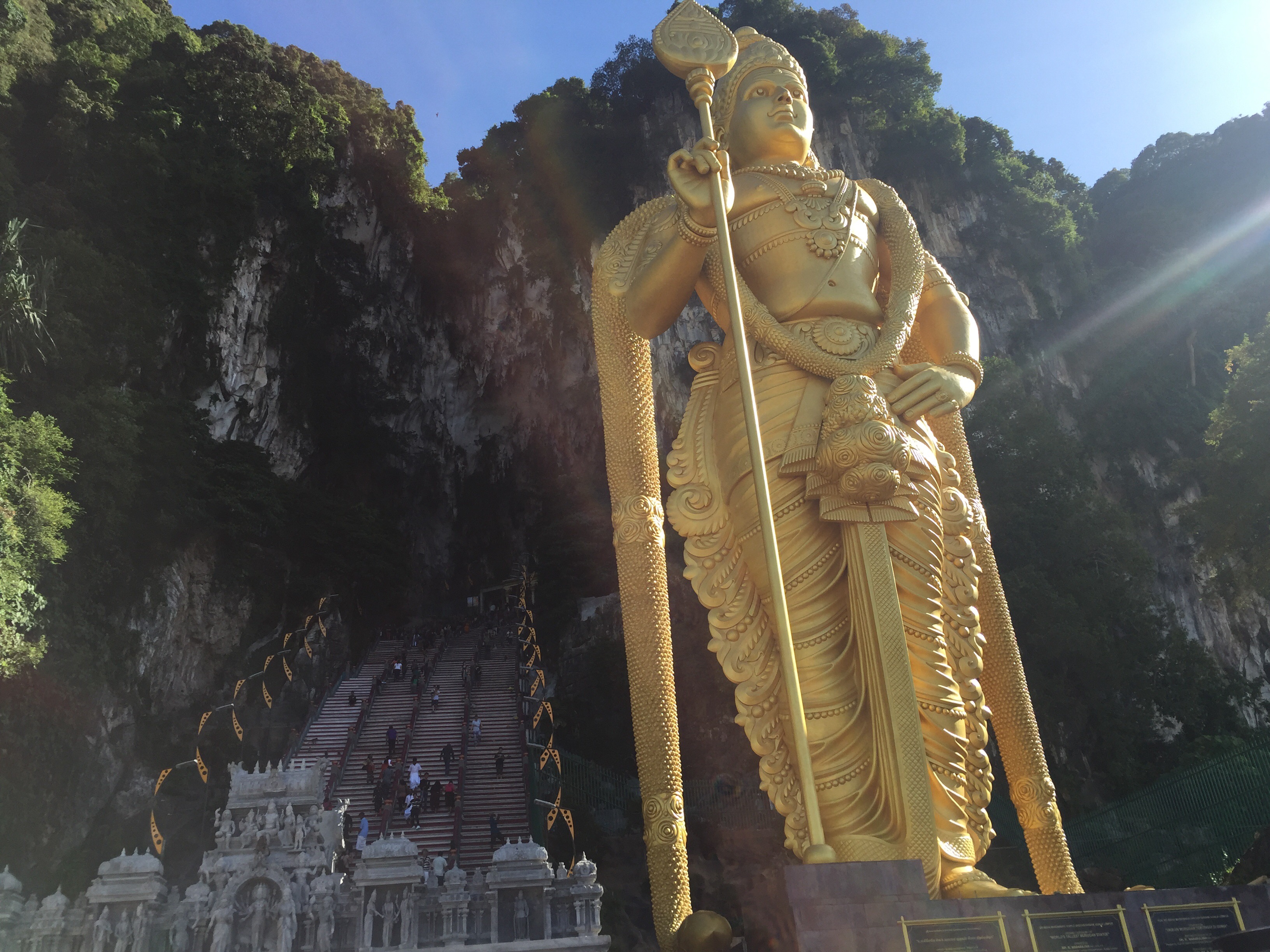 Today we were up early to head over to the Batu caves just outside the city. An area of many caves deep inside huge limestone rocks and the site of a Hindu shrine and huge gold statue of Lord Murugan the god of war and fertility. We climbed the many steps up to see the shrine avoiding the crazy monkeys that climbed everywhere, and then went into the Dark Caves for a tour with the conservation team. It was a fantastic tour, complete with crash helmets and torches (it was totally pitch black!!)and we all learnt so much, not only about these caves and the 200,000 bats and other creatures that live inside but also all about the unique guano ecosystem going on. Travel school for the day done ✅ very interesting!