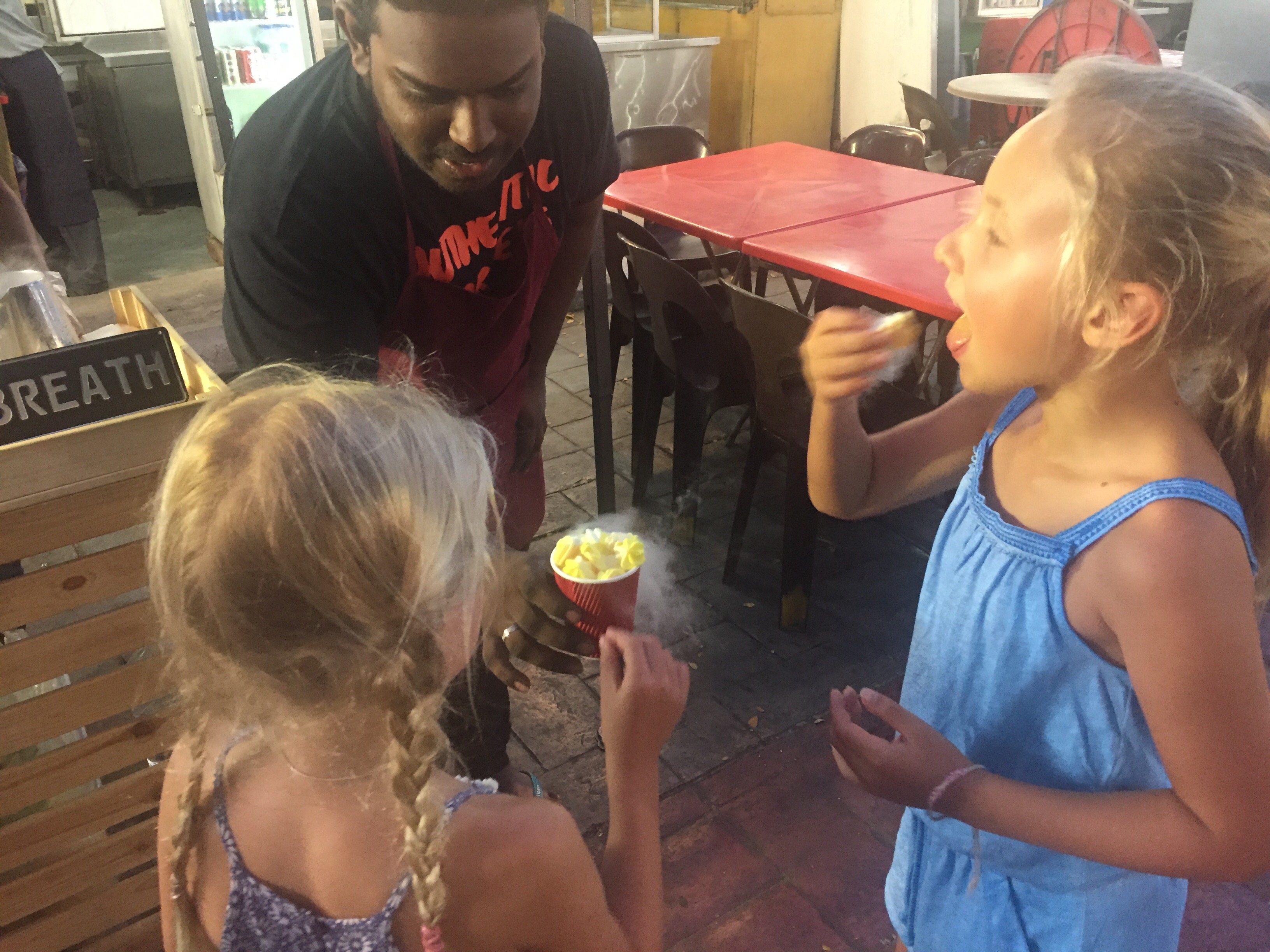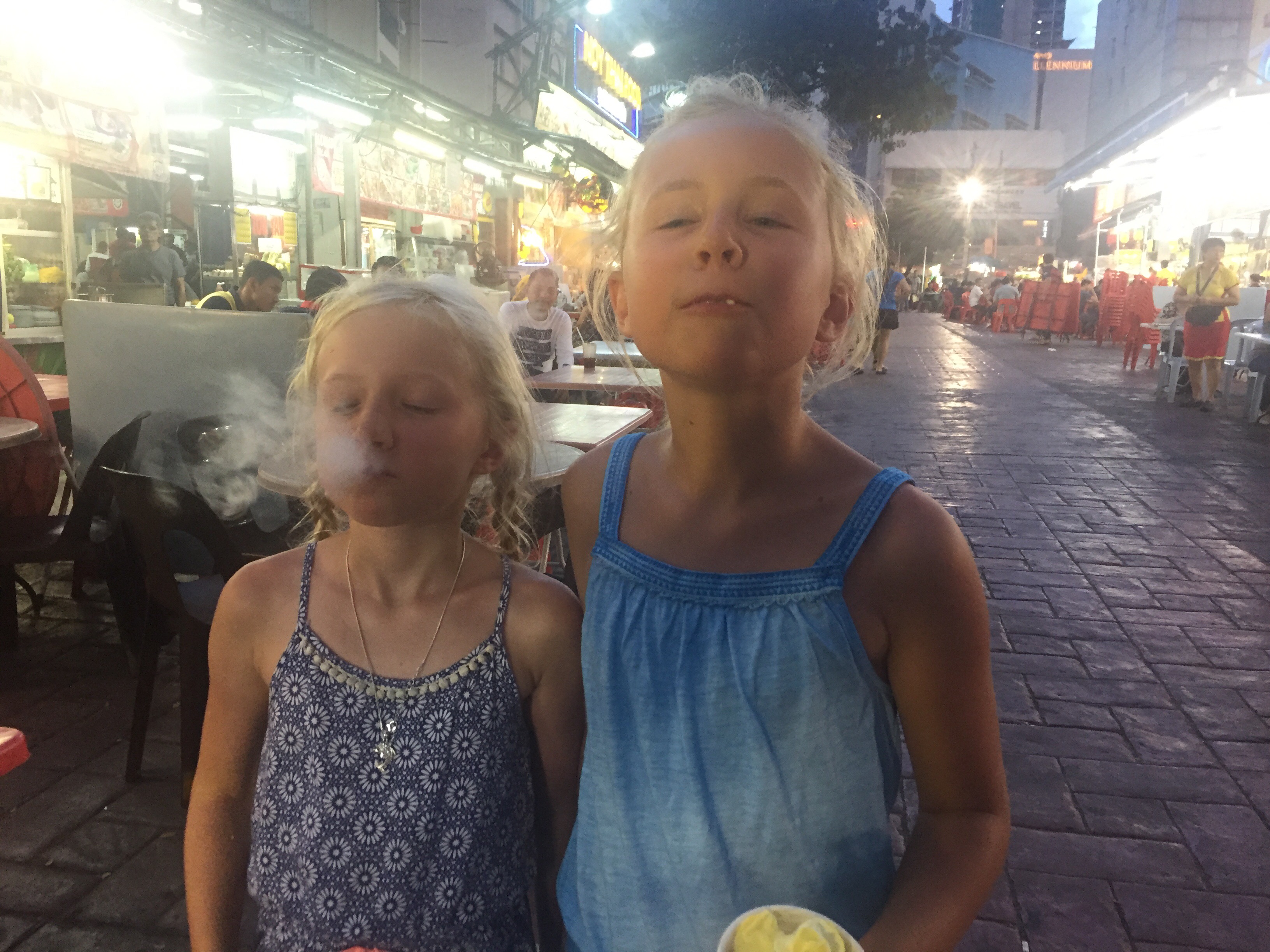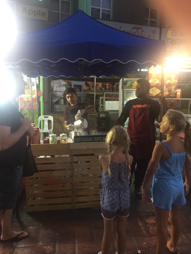 This evening we have been out on a food tour with a local Malaysian guy, we visited the street food markets and tried out lots of scrummy dishes…..and with a little coaxing the girls tried everything too, although I think their favourite was the dragons breath meringues cooled with nitrogen! 😳
