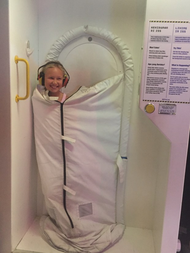 This week we’ve done less travel schooling with our books and been out and about! We spent pretty much and entire day in the Petrosain Discovery centre, which is an amazing science museum on the top floor of the Suria Mall near the KLCC. With everything from space travel to science experiments , electronics to earth quakes! They even had a reconstruction of an oil rig where Molly enjoyed sliding down the floors in a special rope slide.
