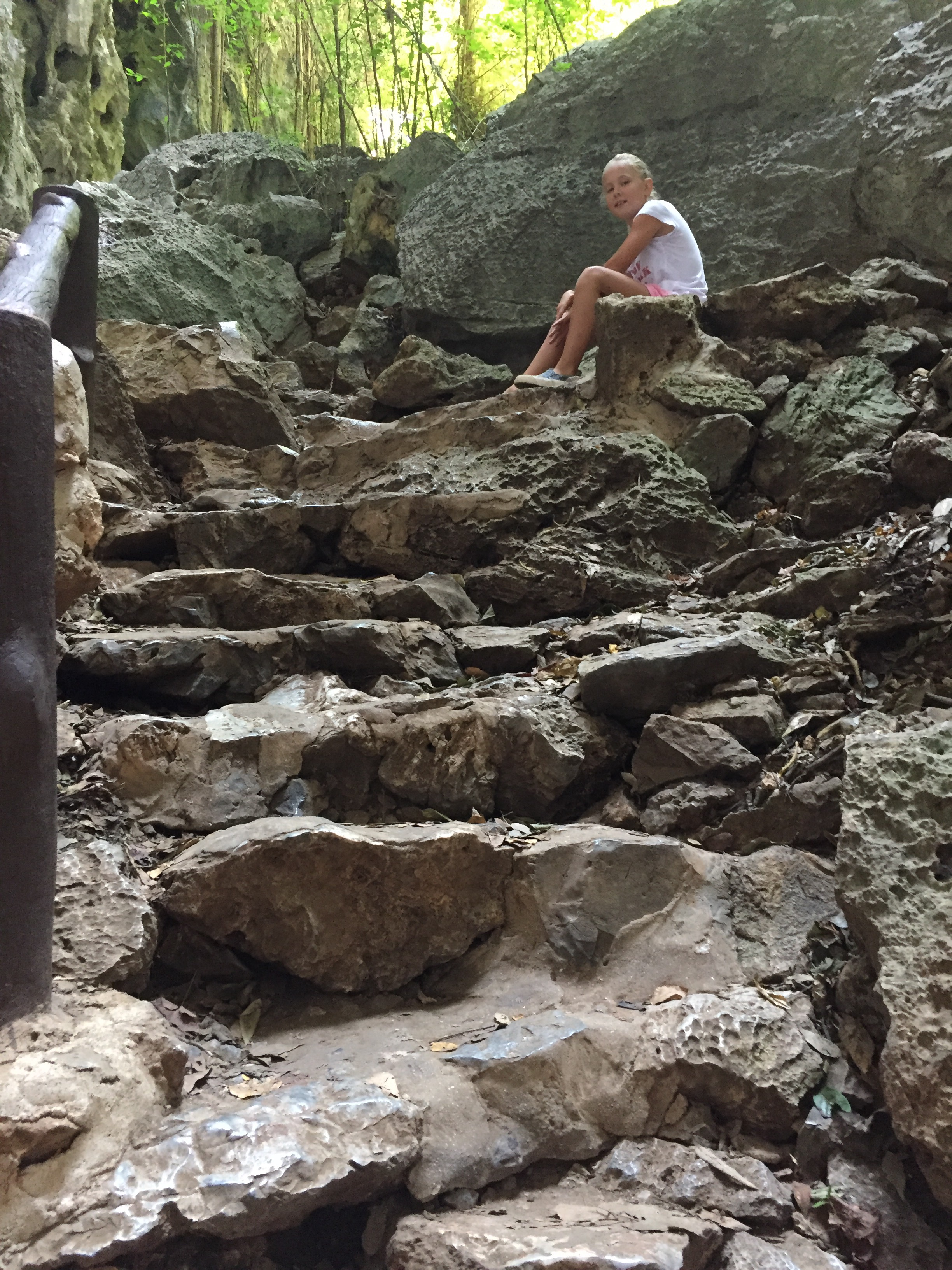 Now the trek up to the cave was really really tough! About 430 metres up rocky uneven steps! The sun was shining down and we were literally dripping in perspiration, Molly nearly passed out twice! Eventually we reached the top and began the descent into the cool caves.