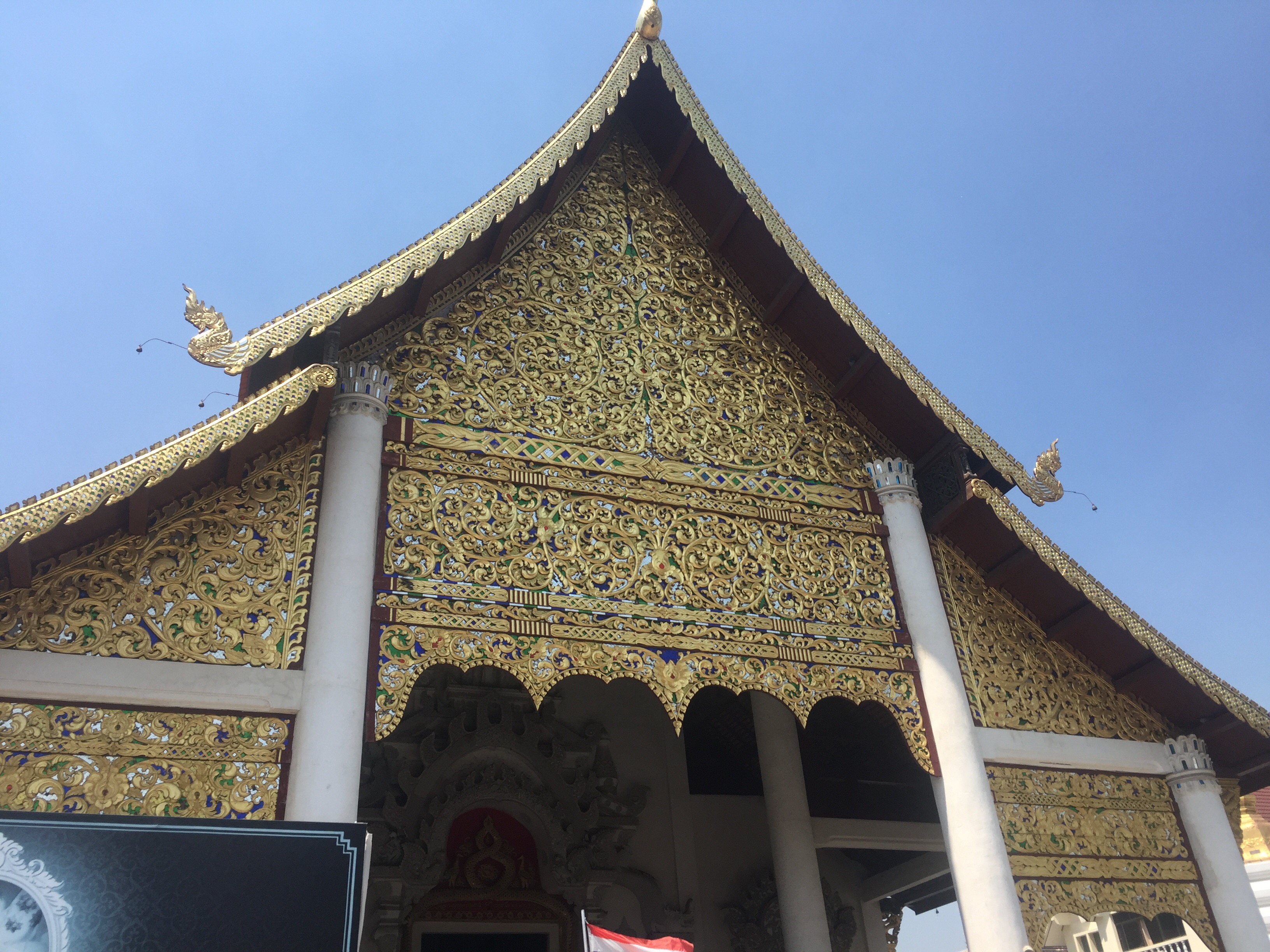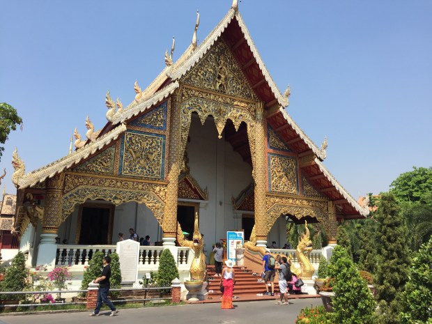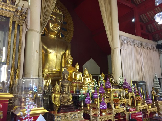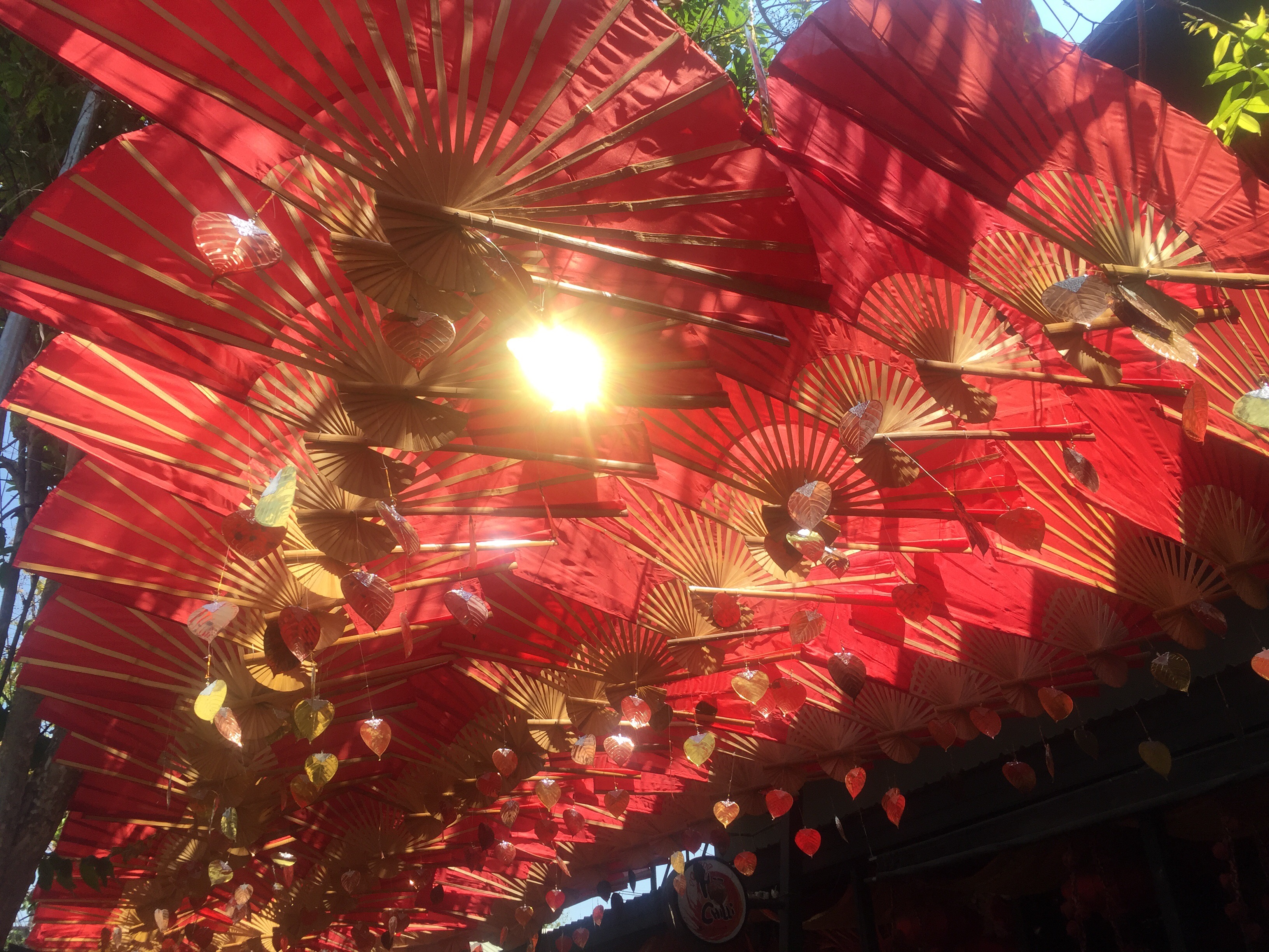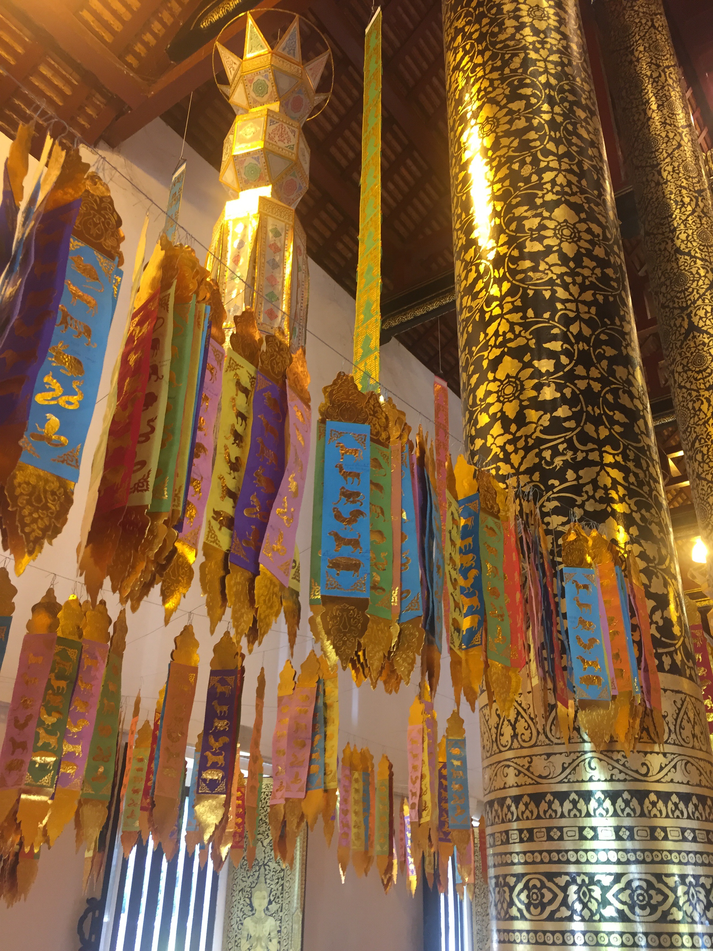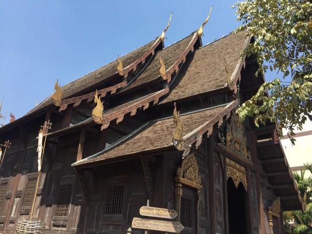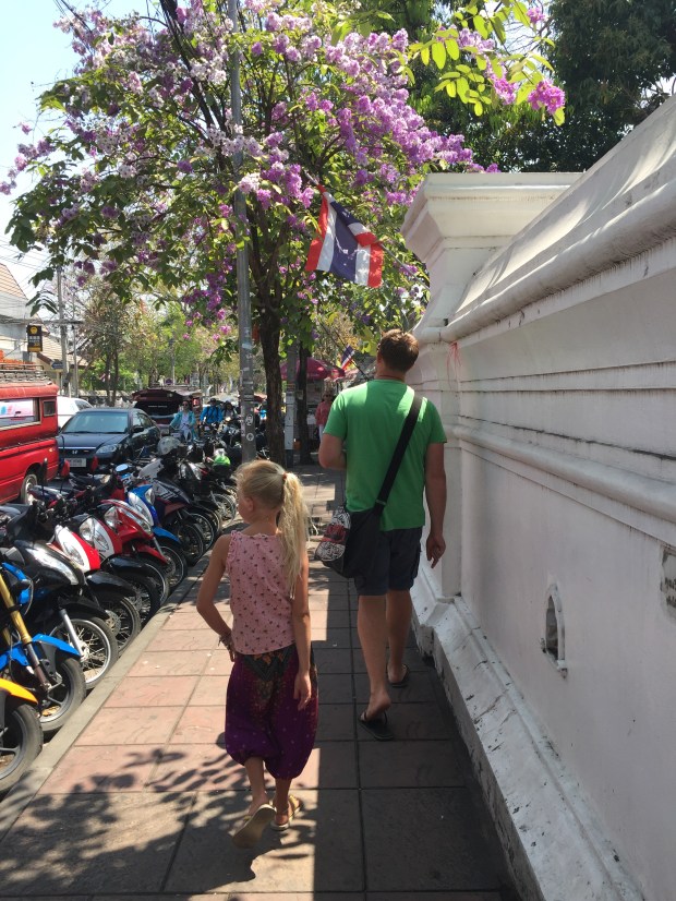 The old town of Chiang Mai is built on a sort of square precinct with a surrounding moat and an old wall that has fallen down in some areas. Within the moat are many pretty streets with blossom trees along the pavements and little stalls selling fresh fruits and sweet treats to passers by. On every corner there’s a tuk tuk driver offering you a lift for a good price! Everyone here seems so happy and full of smiles!