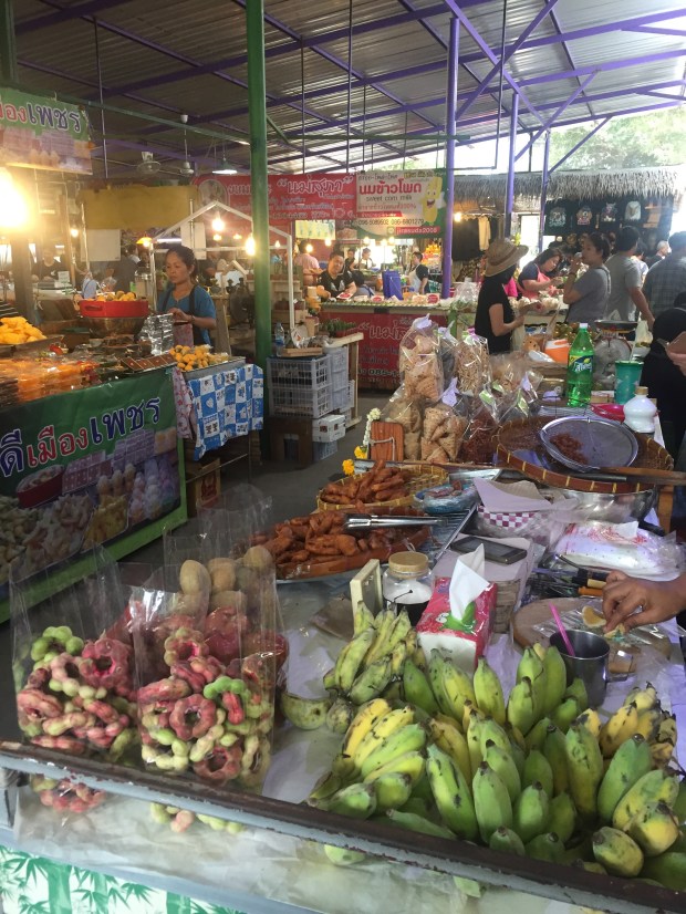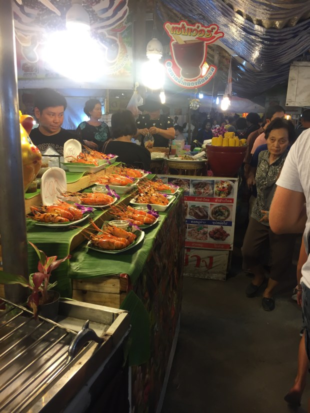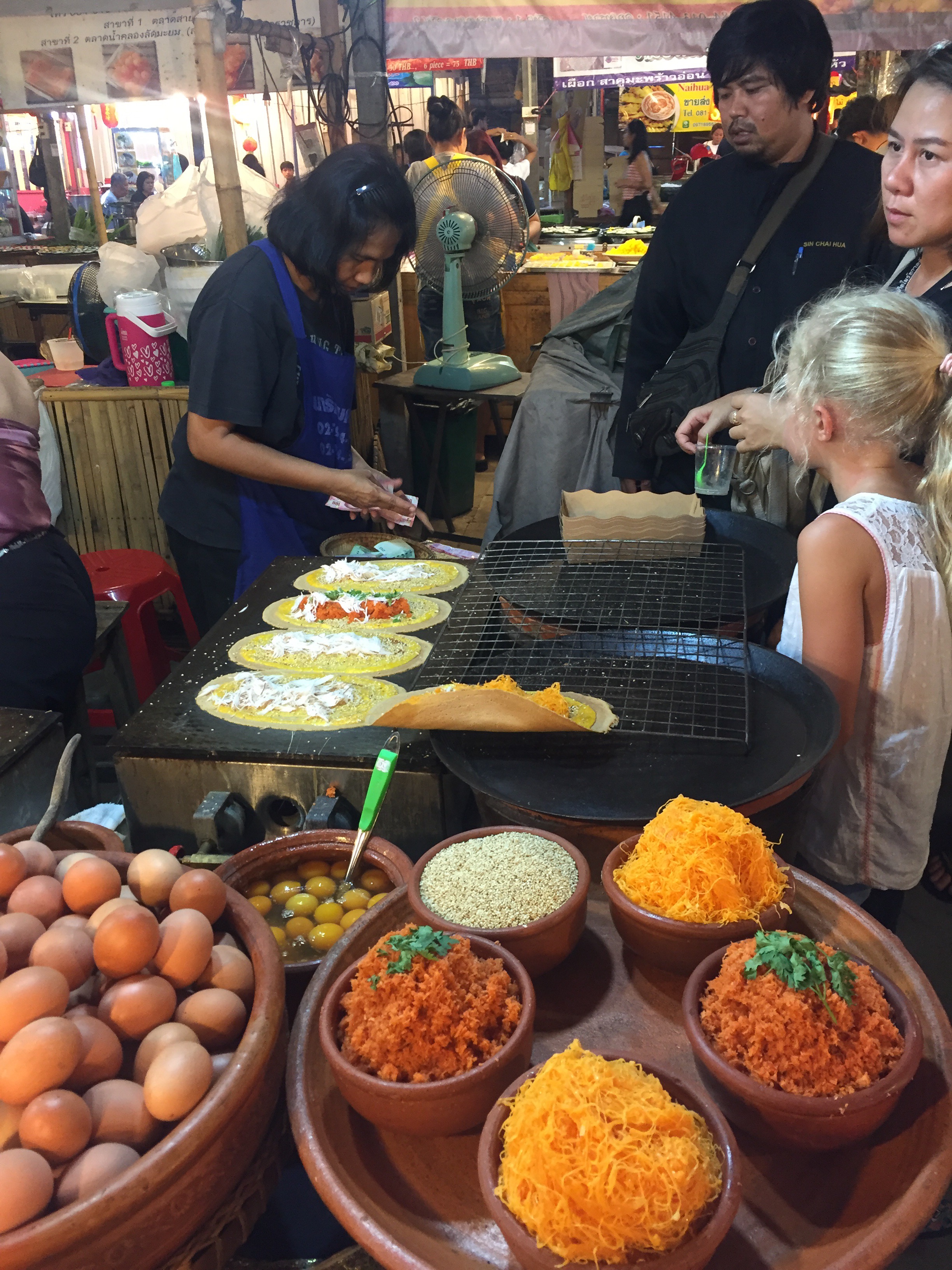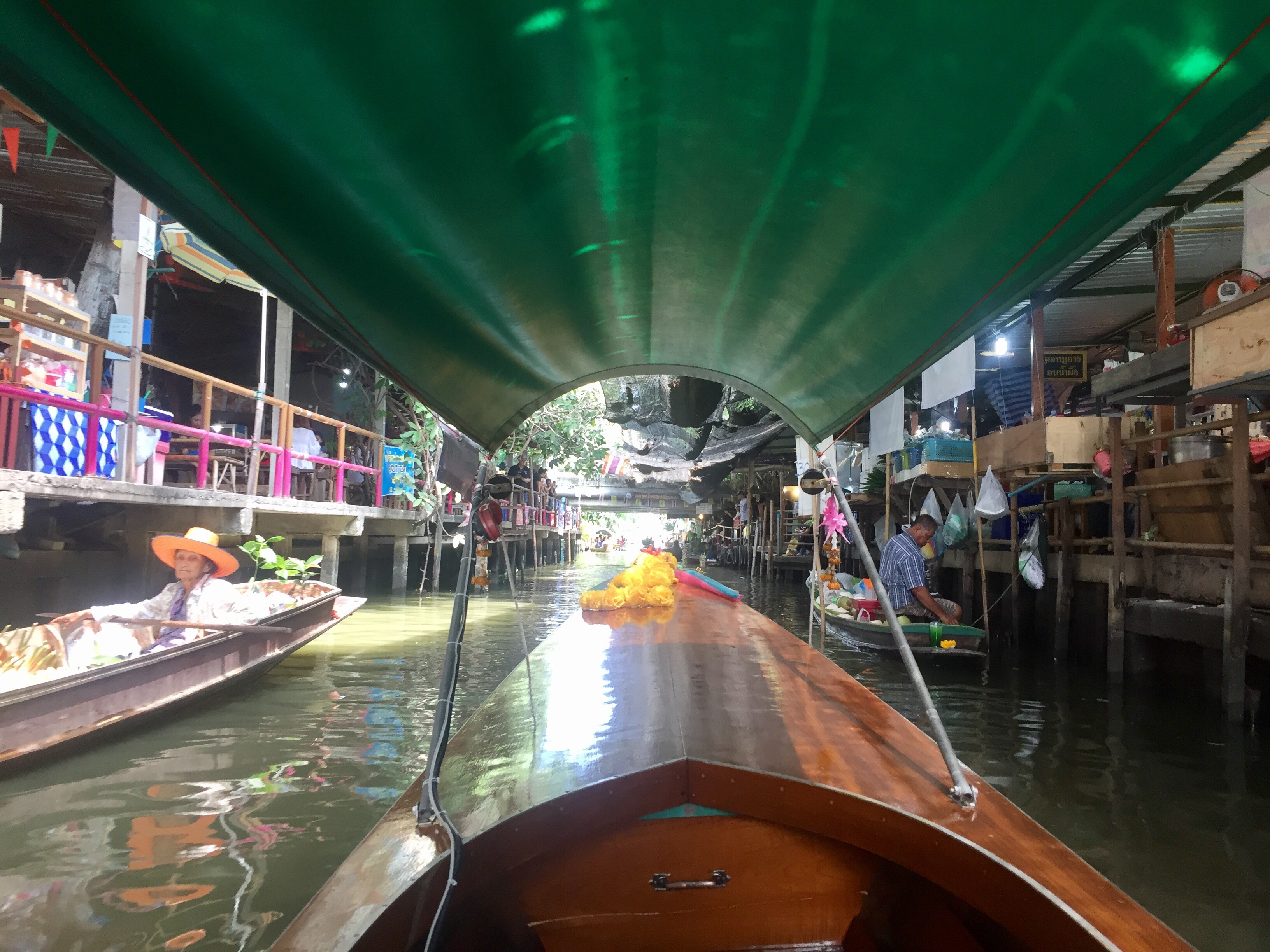Afterwards we returned to our boat and set off to the floating market for lunch! Here Nadia took us from stall to stall explaining all the dishes and food on offer! So much more than pad Thai and green/red curries! The market was a feast of exotic flavours and aromas, and the variety was vast! Thankfully Nadia kindly picked out dishes for us, far too many, but it was amazing to try all these different freshly cooked flavours….and the girls got their favourite mango and sticky rice again! We left the maket with very full tummies!