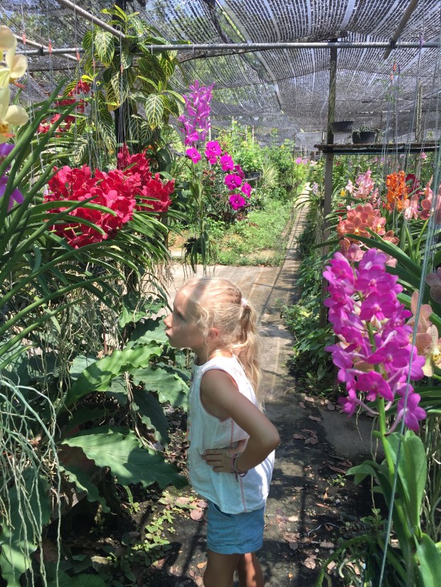 The orchid farm was beautiful, such an array of beautiful orchid colours, sizes and scents! The girls enjoyed some local fruits off the tree, no idea what they were, something like a gooseberry but they devoured them enjoying the sharp taste!