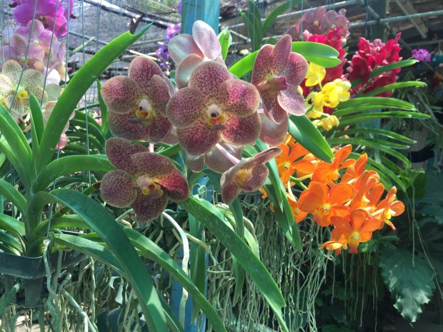Afterwards we took a 40 minute trip along the different canals making our way up to the orchid farm. On the way we spotted water lizards swimming in the green water, small boats ladened with all sorts of fruits and vegetables making their way to the market. Around one corner a gaggle of children splashed and played happily in the water under their house. Everyone seemed so happy and chilled without a care in the world!