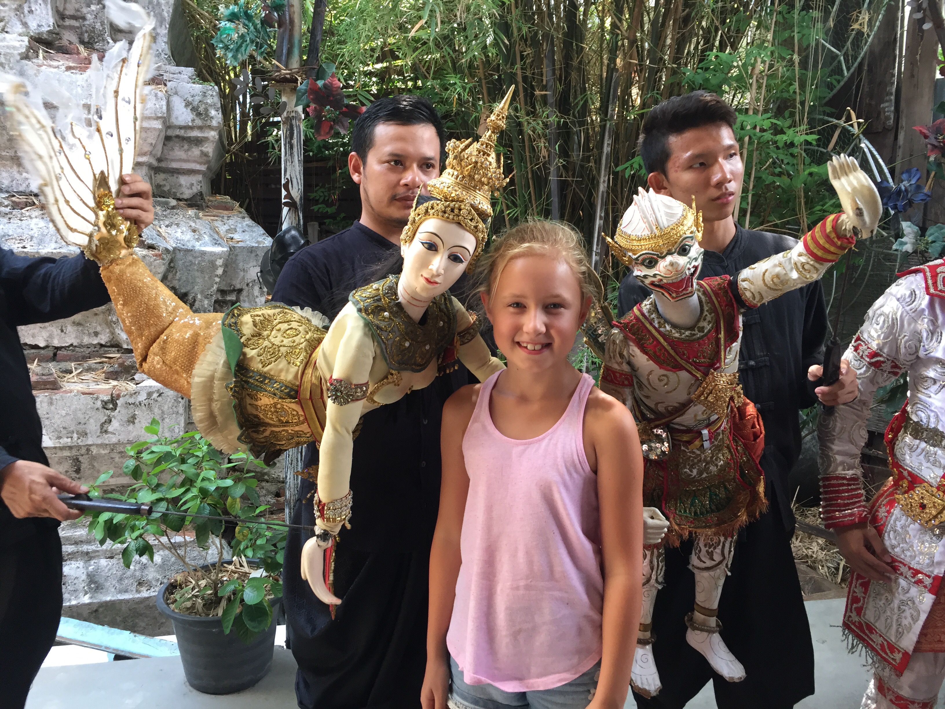 On the way back we stopped at an artists house on the side of the canal, to catch a traditional Thai puppet show. Although it was mostly in Thai it was fun to watch and the comedy came across in the actions of the talented puppet artists!