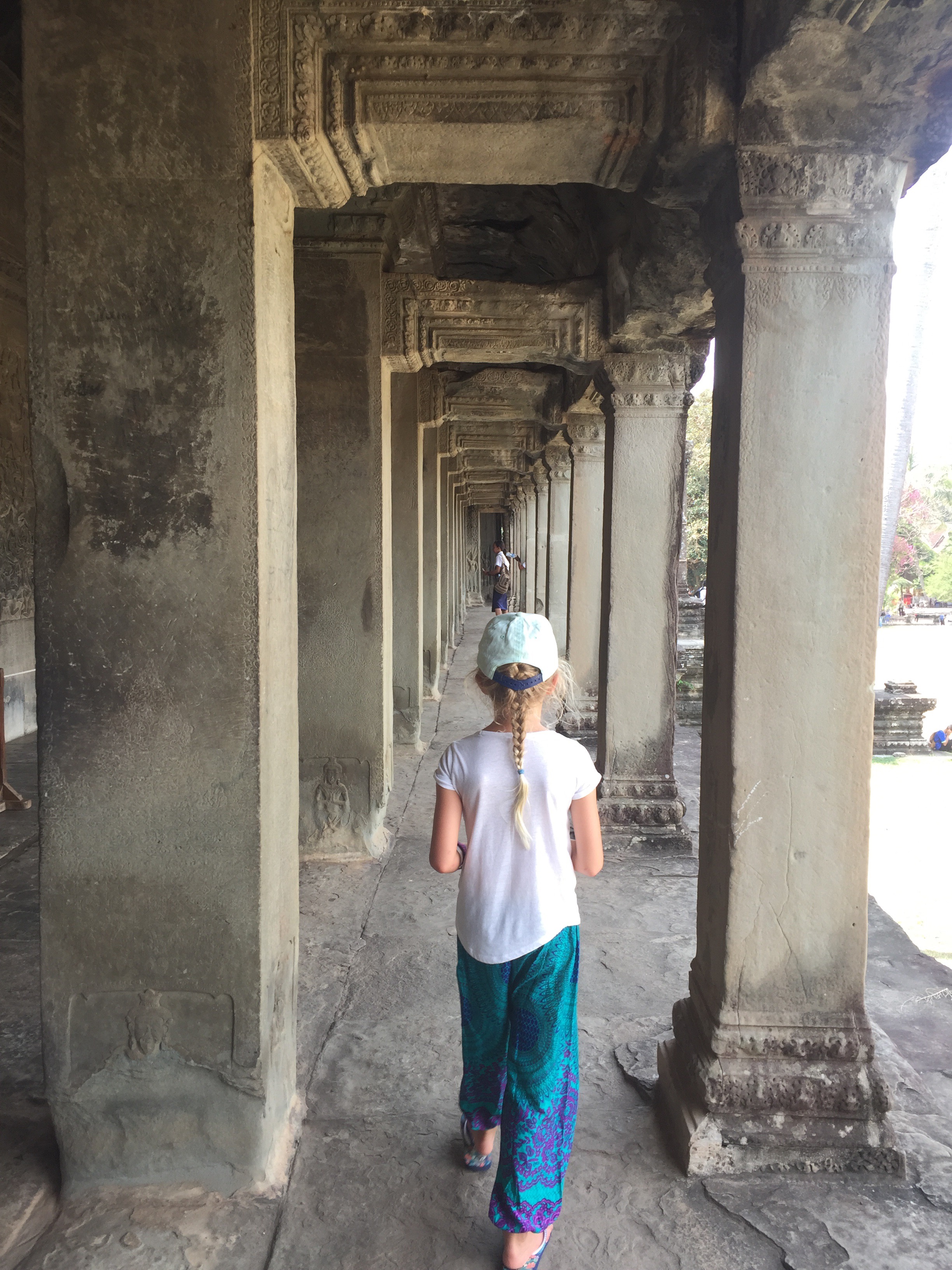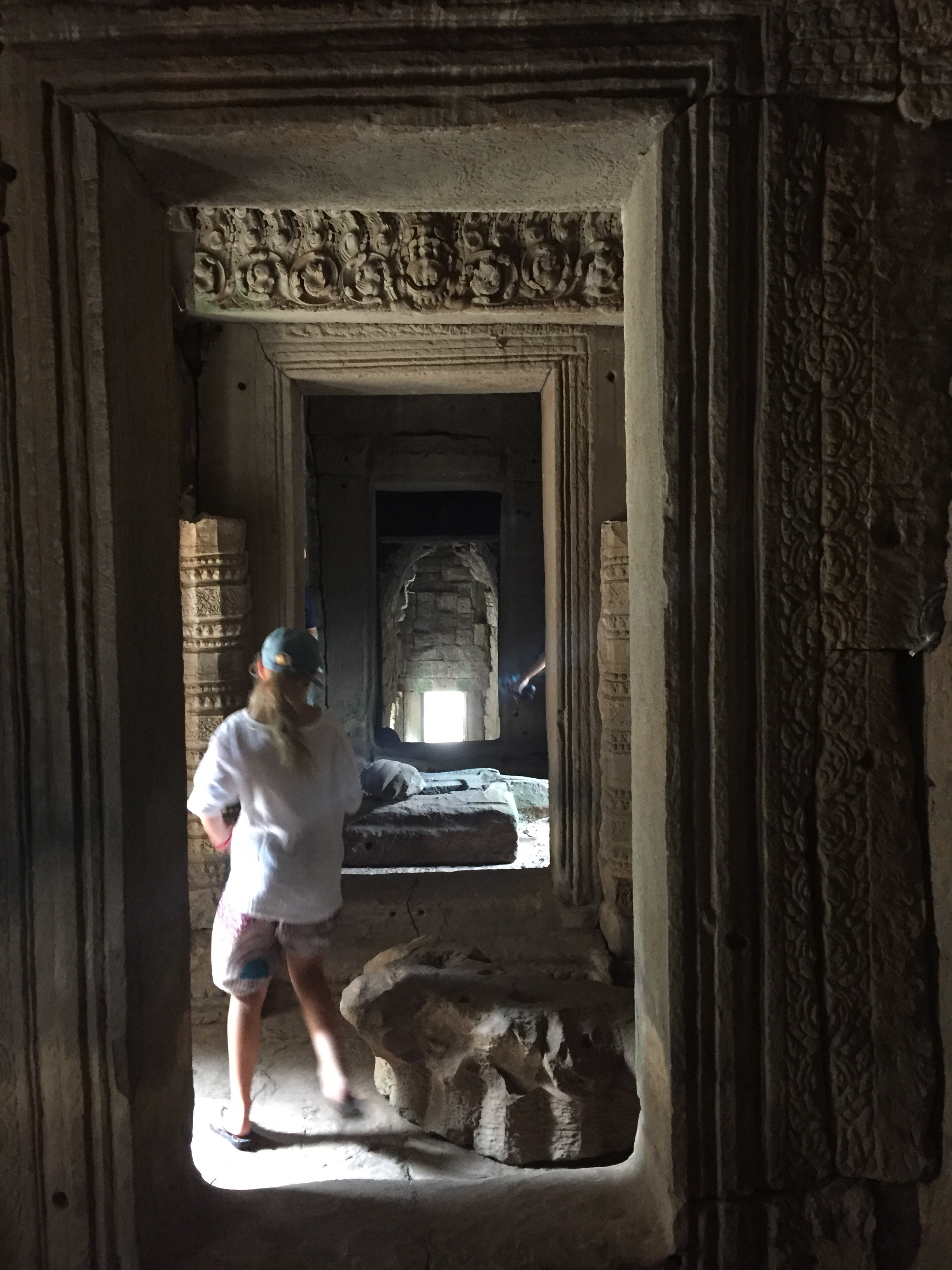Walking around the temples definitely takes some endurance, the heat during the day is immense with the scorching sun beating down. Everyone is walking around absolutely dripping wet from perspiration and clinging to any shade the huge buildings offer! We decided to loose the crowds and found our own quiet corners and passageways where we could peacefully take our time, and slowly look at everything, we even managed a quick game of hide and seek among the stone columns (Small because the thought of actually not being able to find my children in such a massive complex makes me very uneasy!)