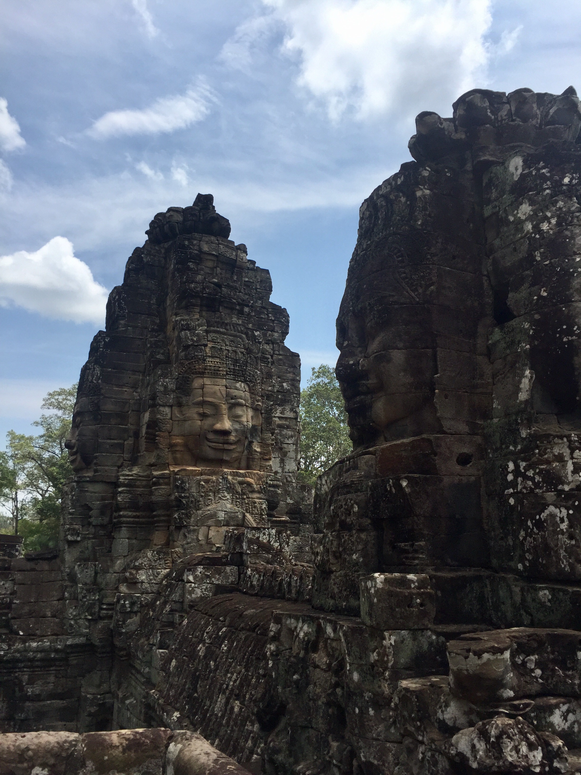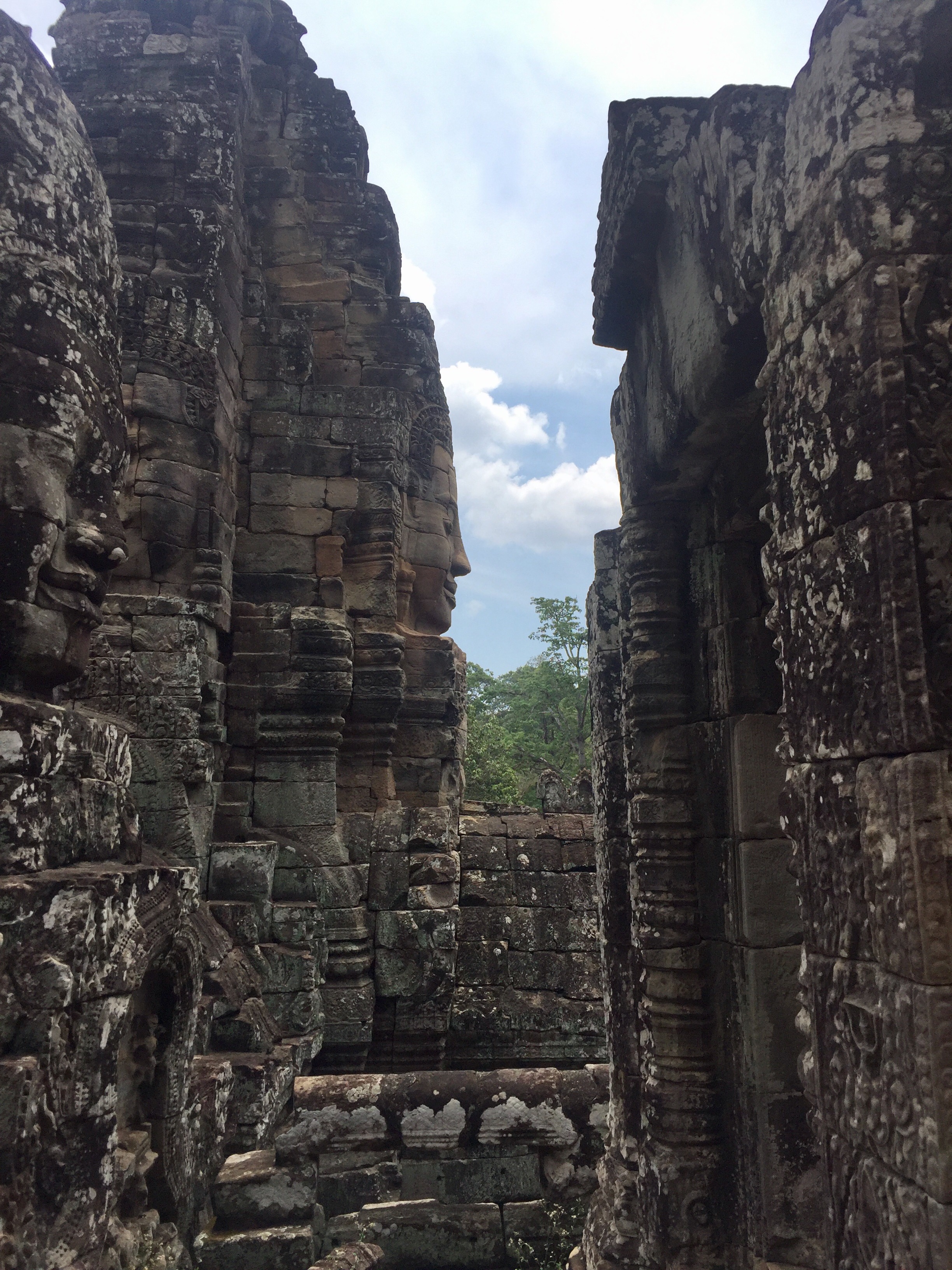 Next up we visited what soon became my favourite, the Bayon Temple, a short drive away at Angkor Thom. Now this temple is the sort of temple out of story books! Over 200 large stone faces watch you as you walk around, some with a calm peaceful demeanour and others really looked like they were smiling at us! Amazing!