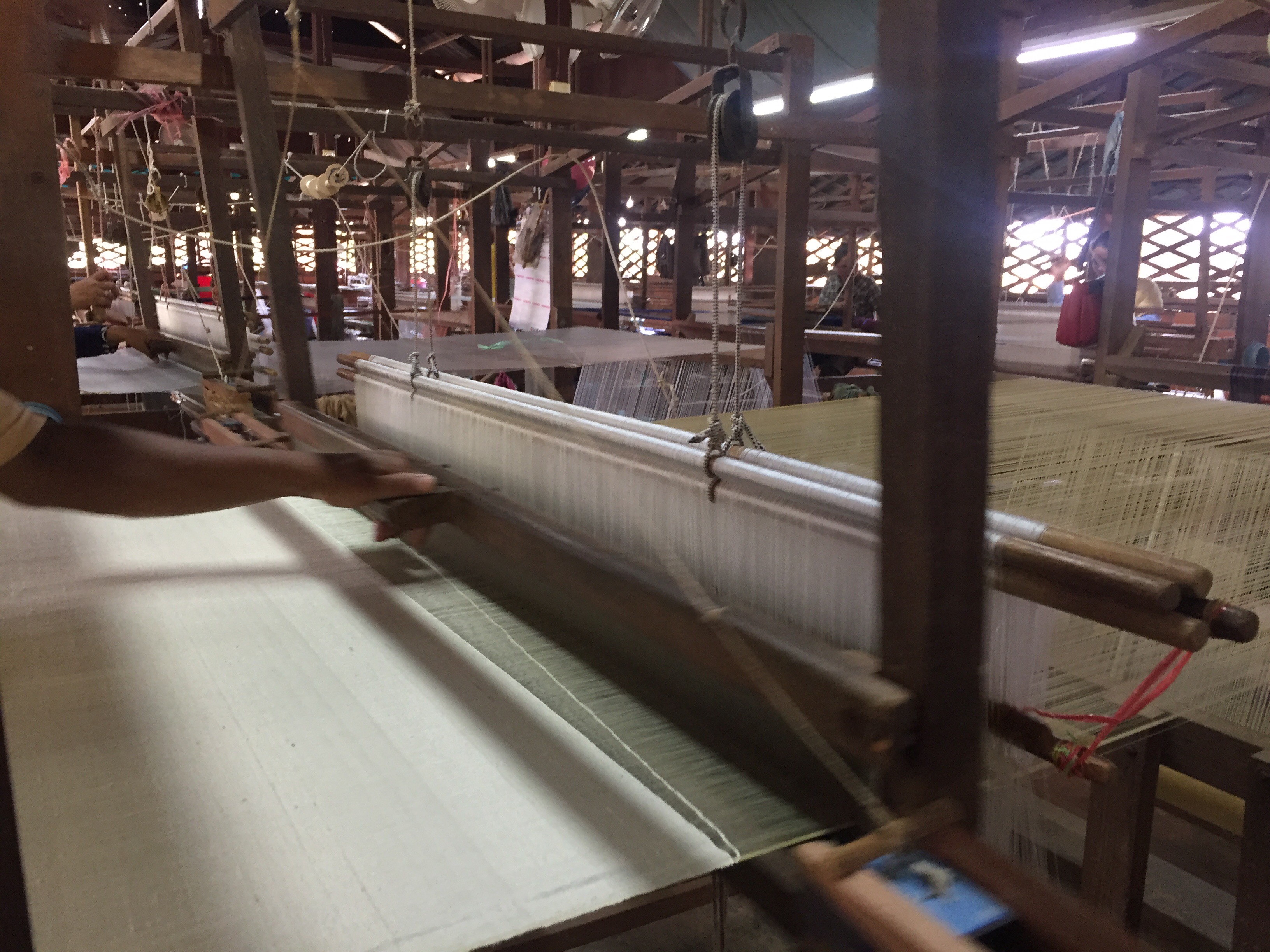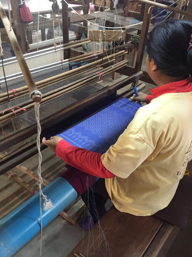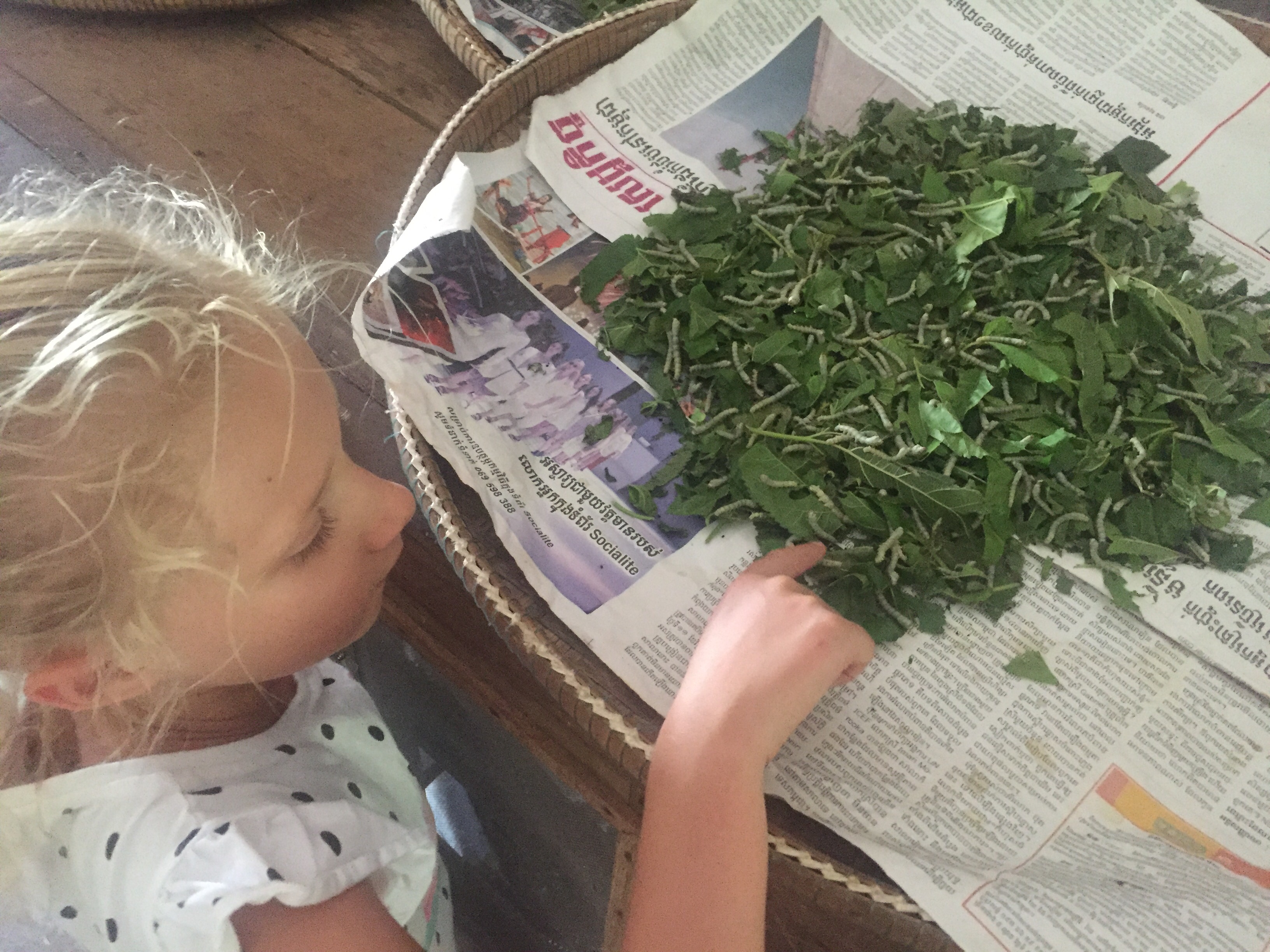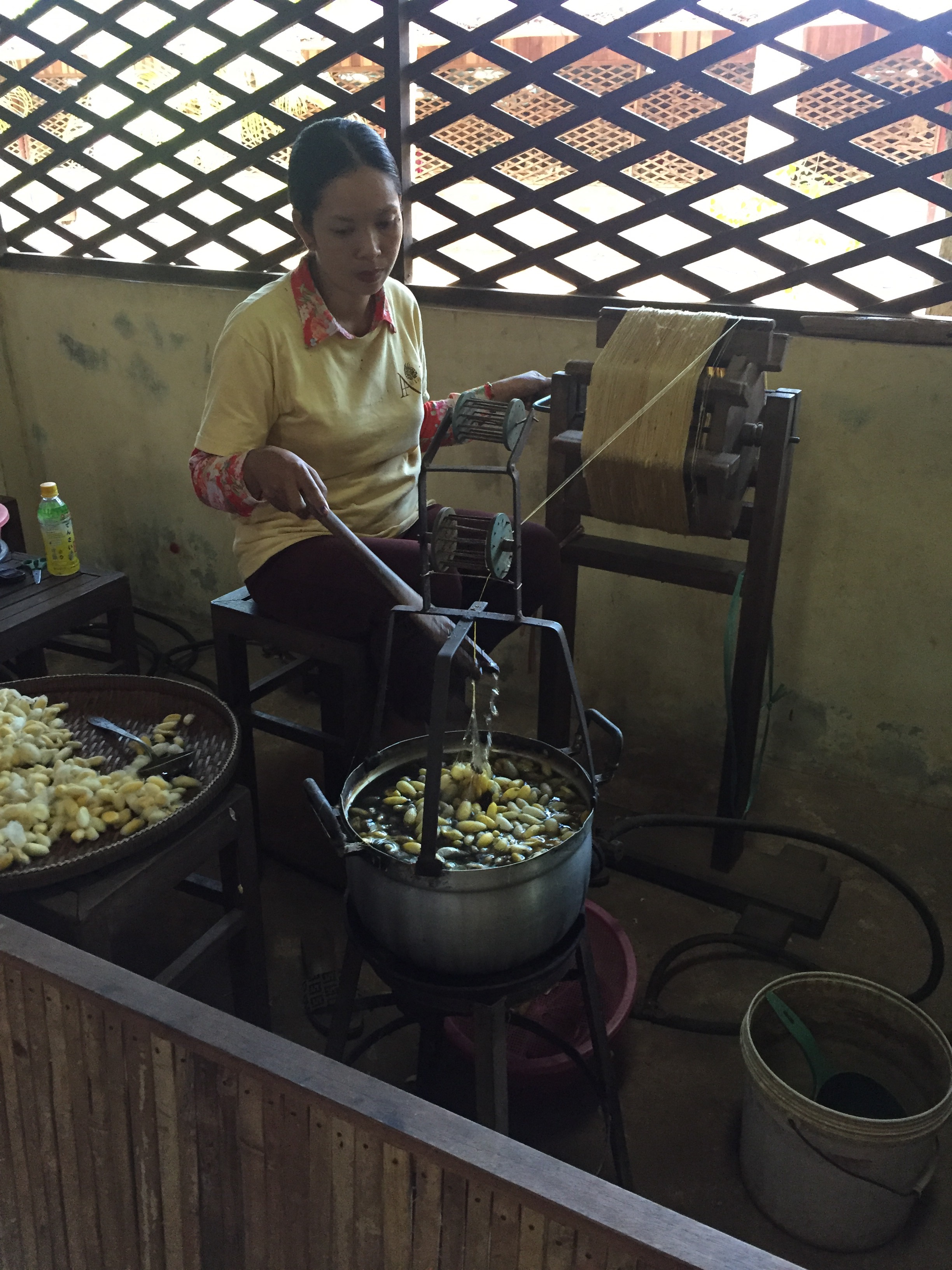 In the afternoon we took a “school” trip out to the Silk Farm in the Pouk district not too far away. We were greeted at the site by an English guide who took us step by step through the silk production process. Starting right from the beginning he explained about the different mulberry bushes growing in the fields, to the little worms spinning their silk cocoons, all the way through to spinning the yarn, the dying processes and the delicate weaving on the looms. It was fascinating and so great to be able to touch and feel it all (including the little worms!!) as we went through all the different workshops.