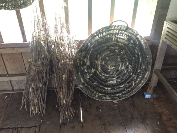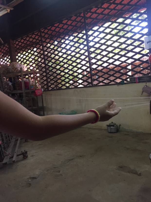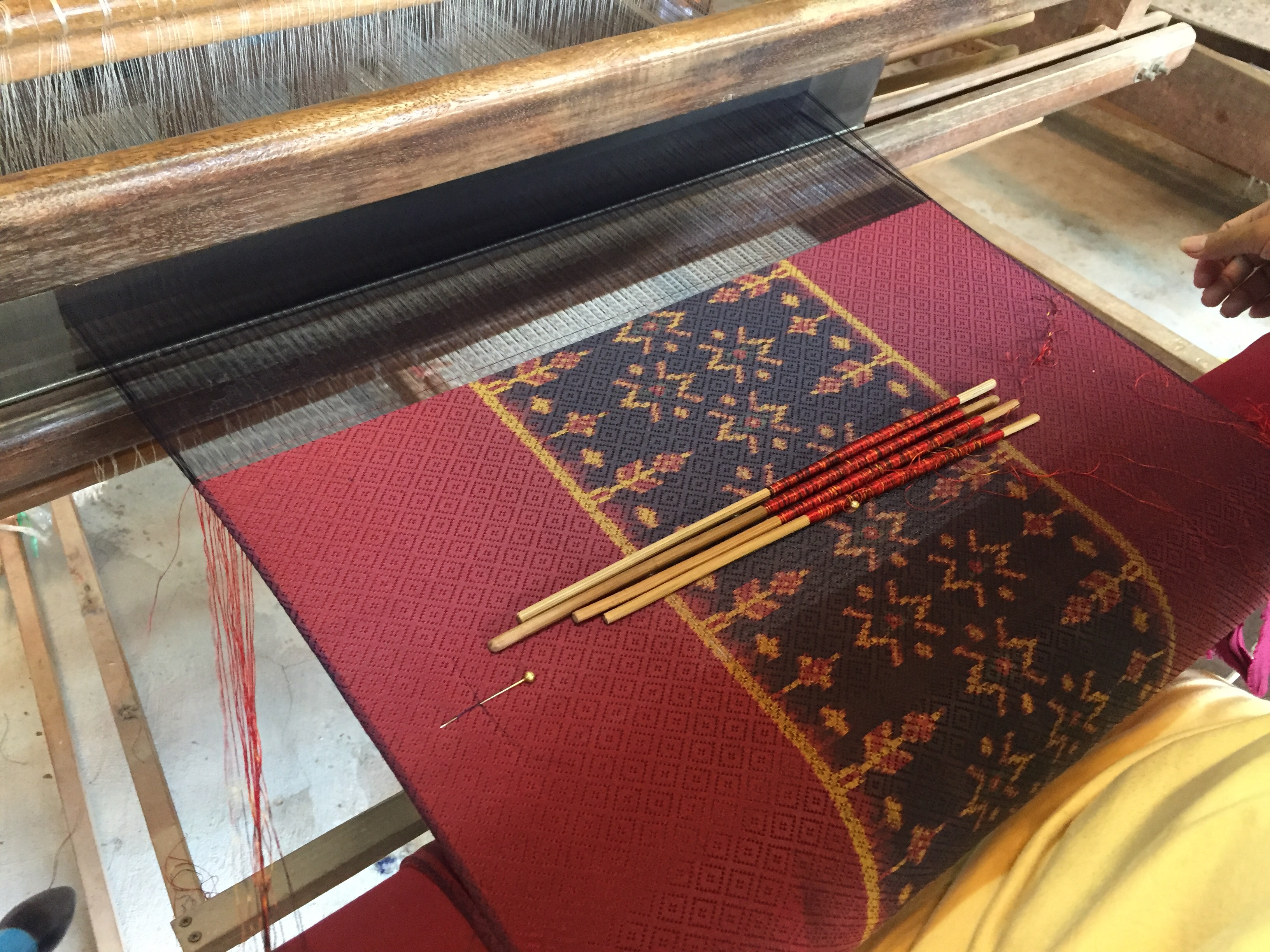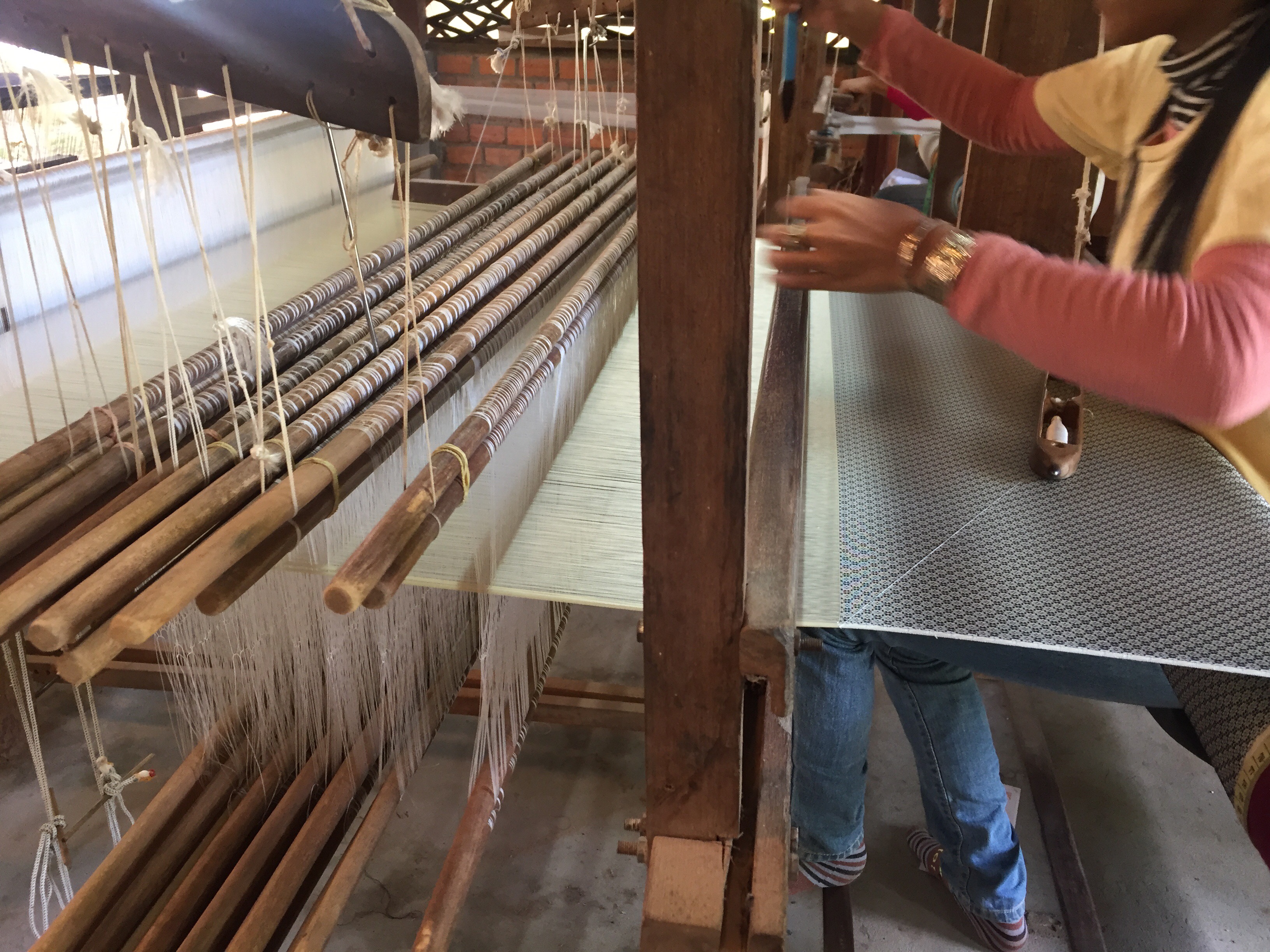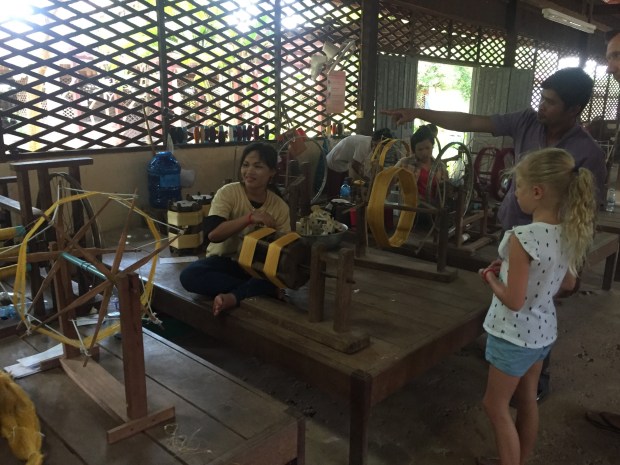 In the afternoon we took a “school” trip out to the Silk Farm in the Pouk district not too far away. We were greeted at the site by an English guide who took us step by step through the silk production process. Starting right from the beginning he explained about the different mulberry bushes growing in the fields, to the little worms spinning their silk cocoons, all the way through to spinning the yarn, the dying processes and the delicate weaving on the looms. It was fascinating and so great to be able to touch and feel it all (including the little worms!!) as we went through all the different workshops.